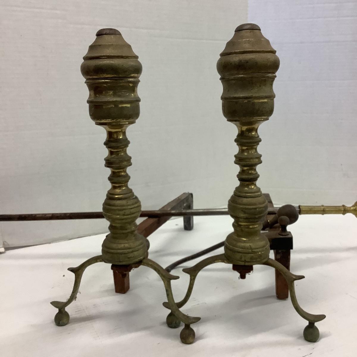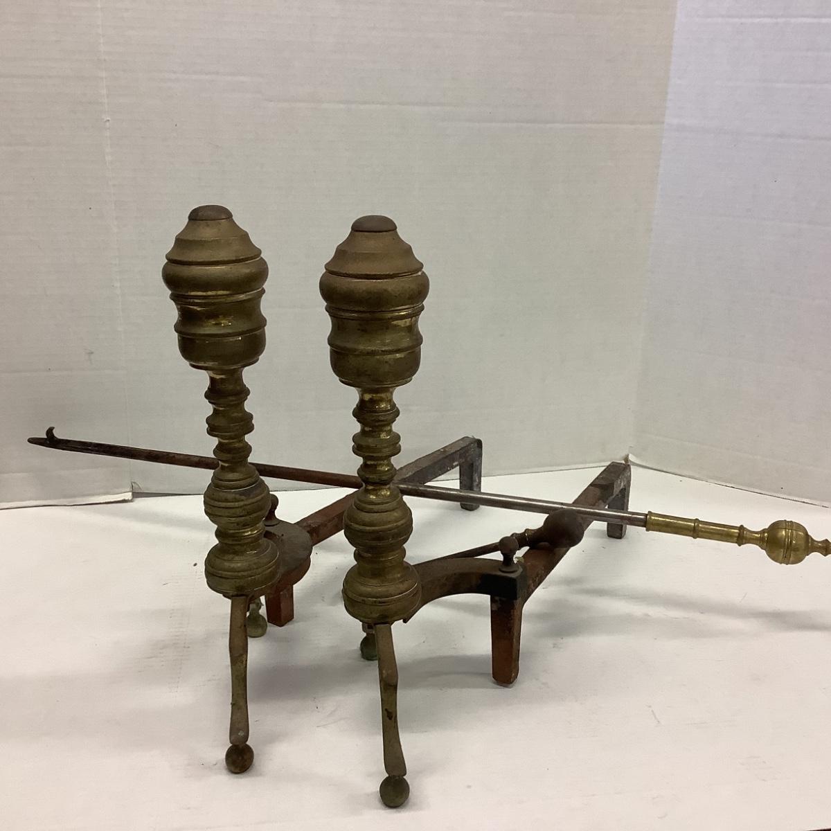Lot. 5520. Vintage Andirons & Poker