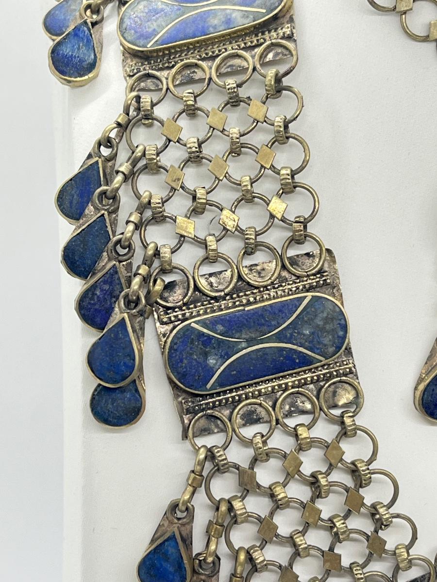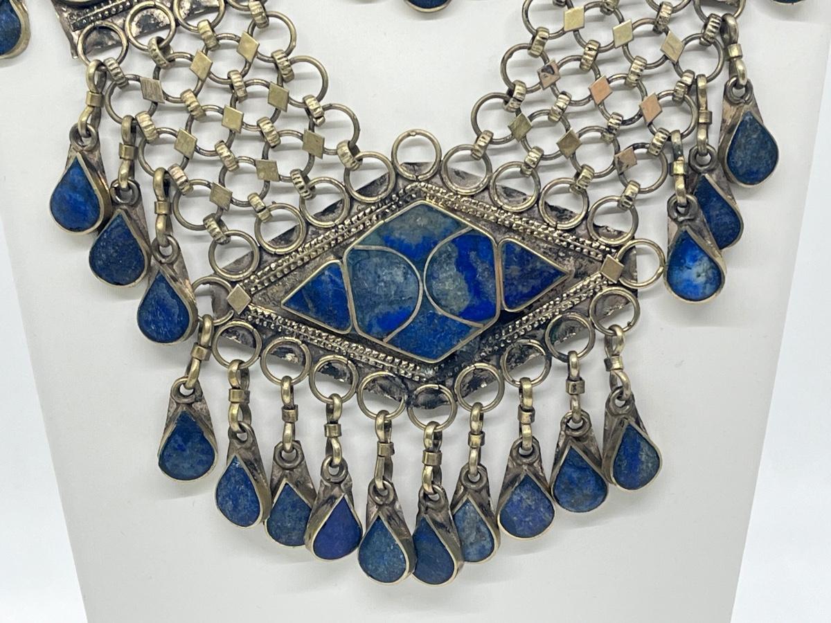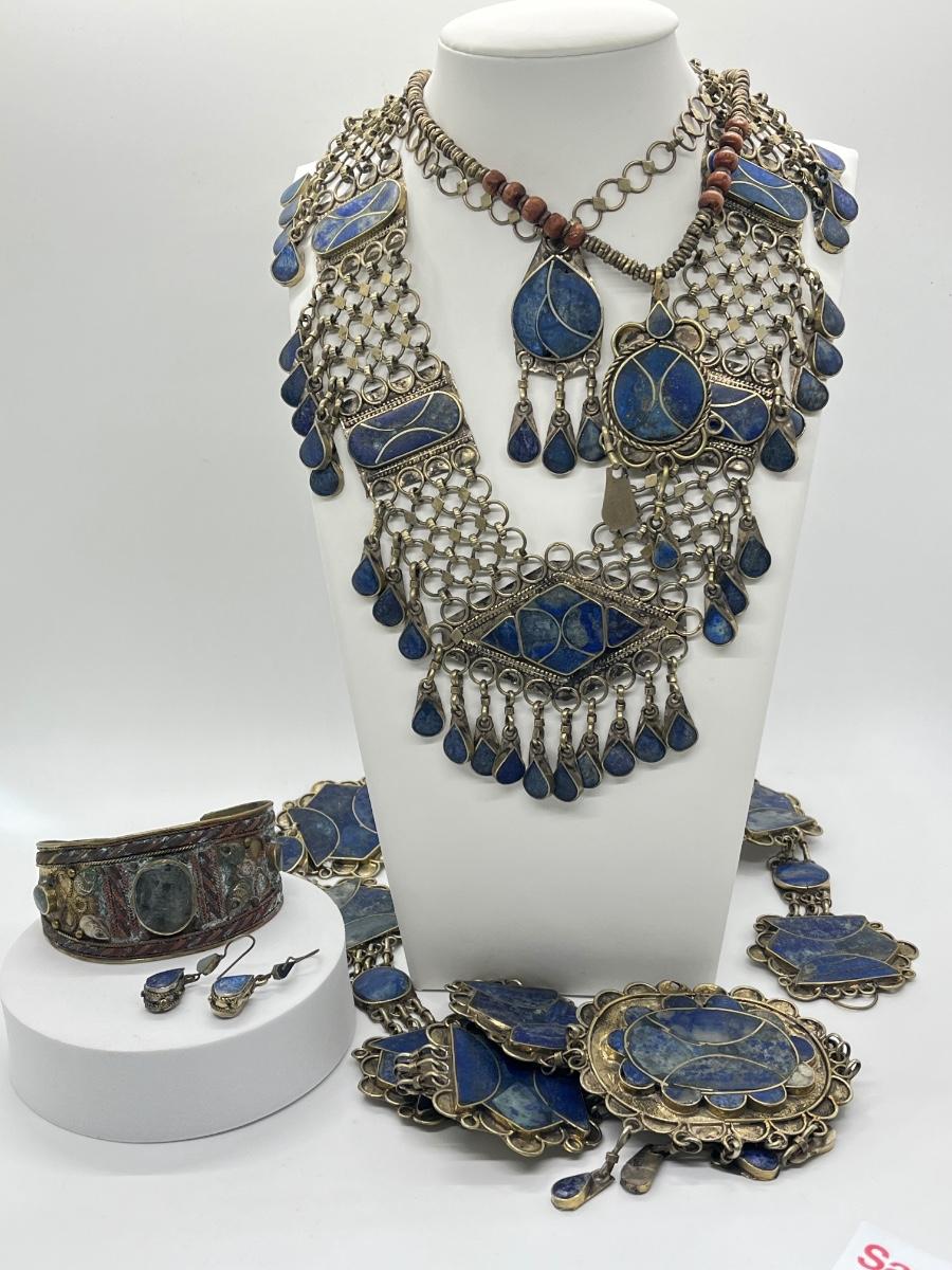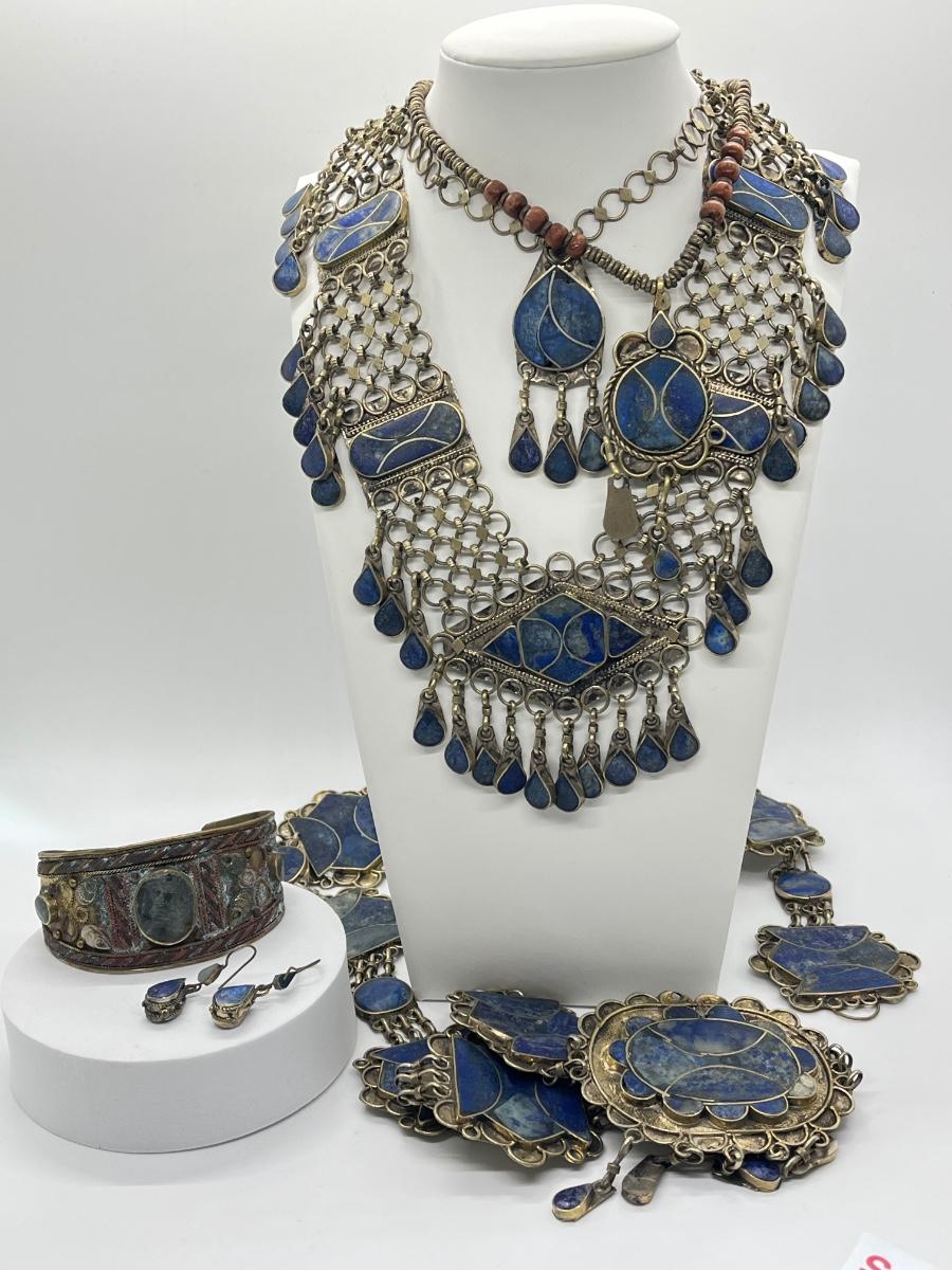 LOT 552F: Middle Eastern Jewelry Set - Lapis Lazuli Necklaces, Belly Chain, Cuff Bracelet, Earrings