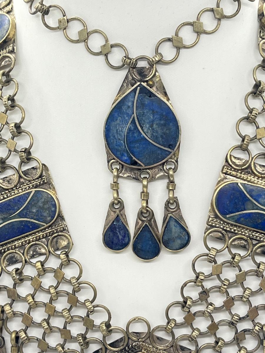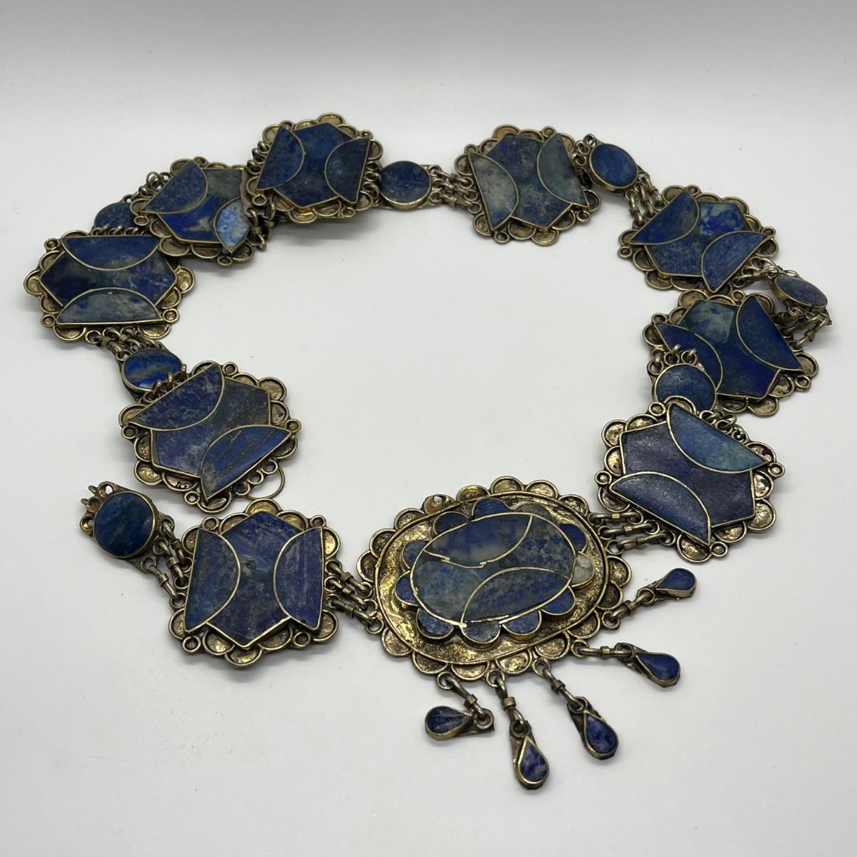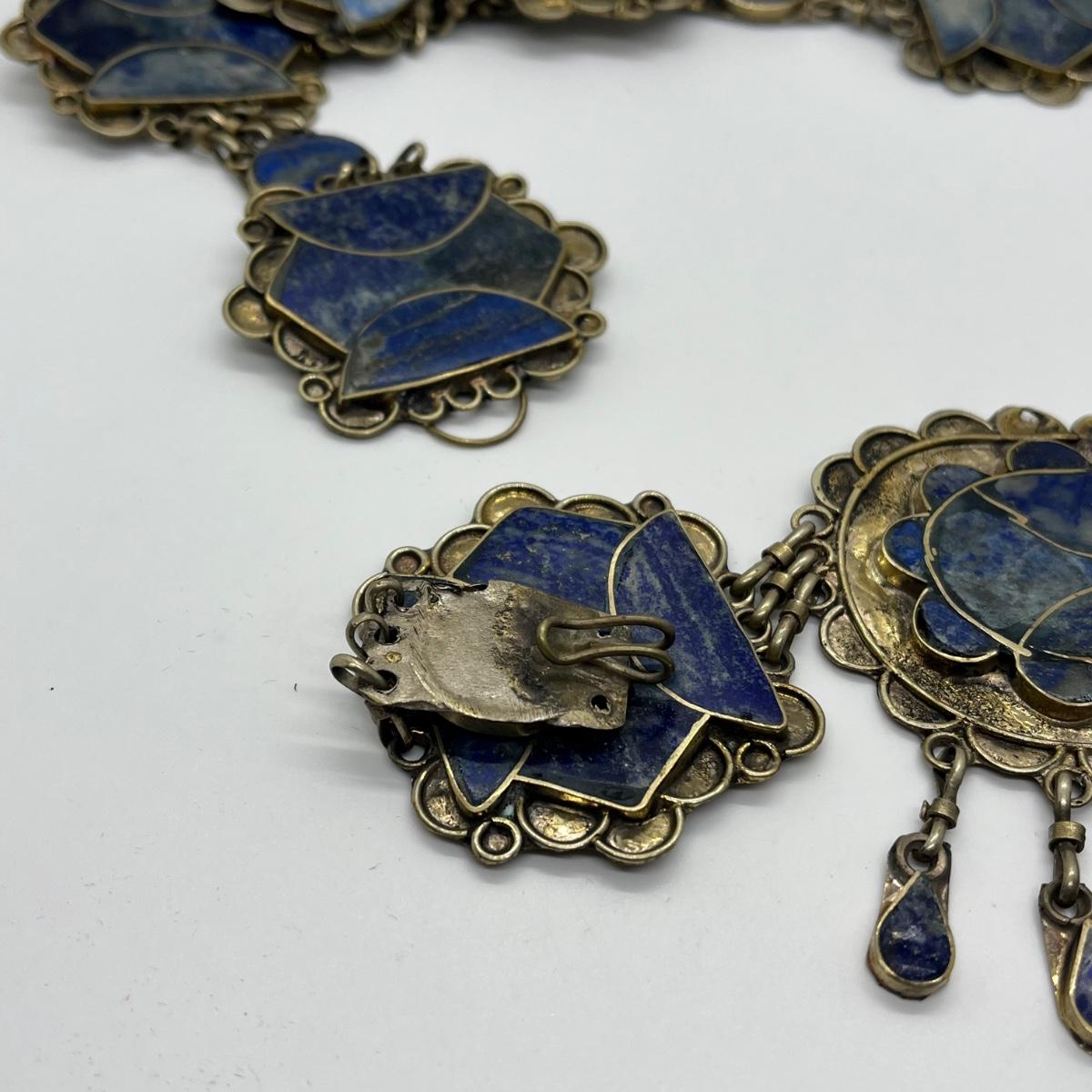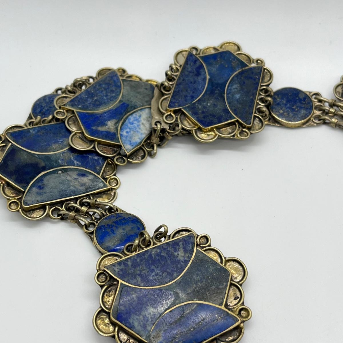 LOT 552F: Middle Eastern Jewelry Set - Lapis Lazuli Necklaces, Belly Chain, Cuff Bracelet, Earrings