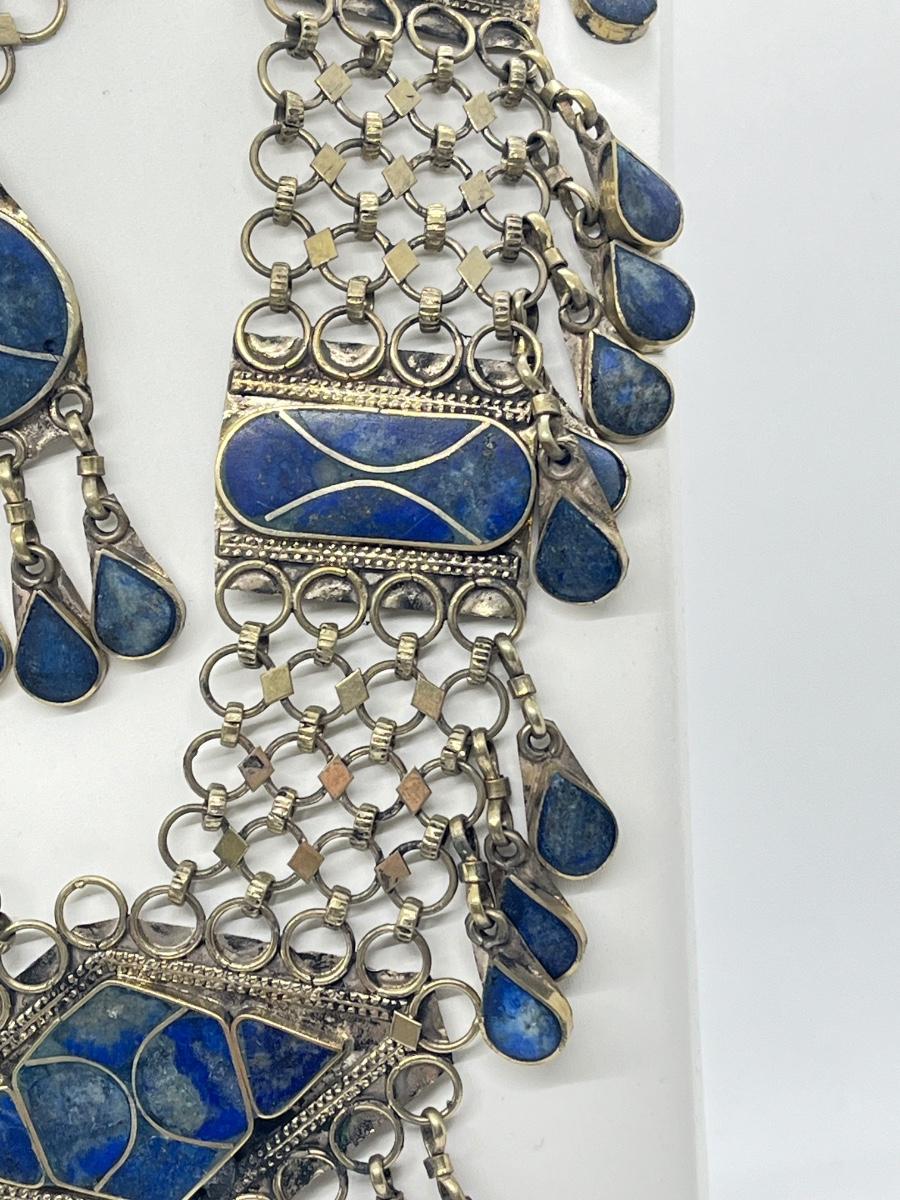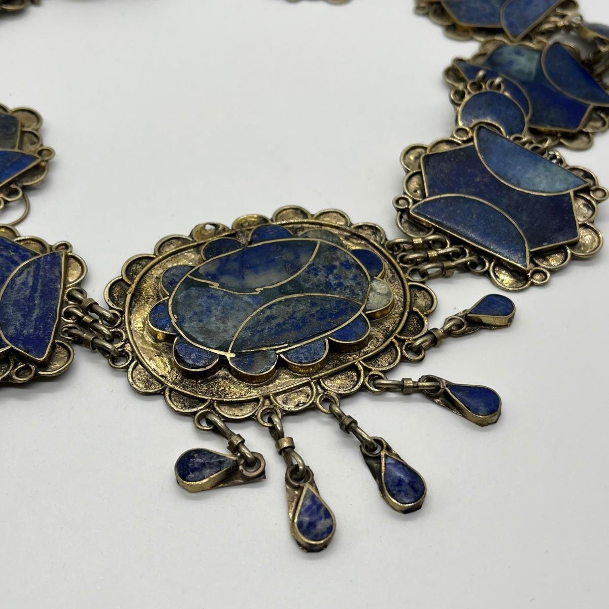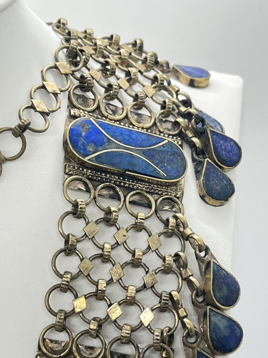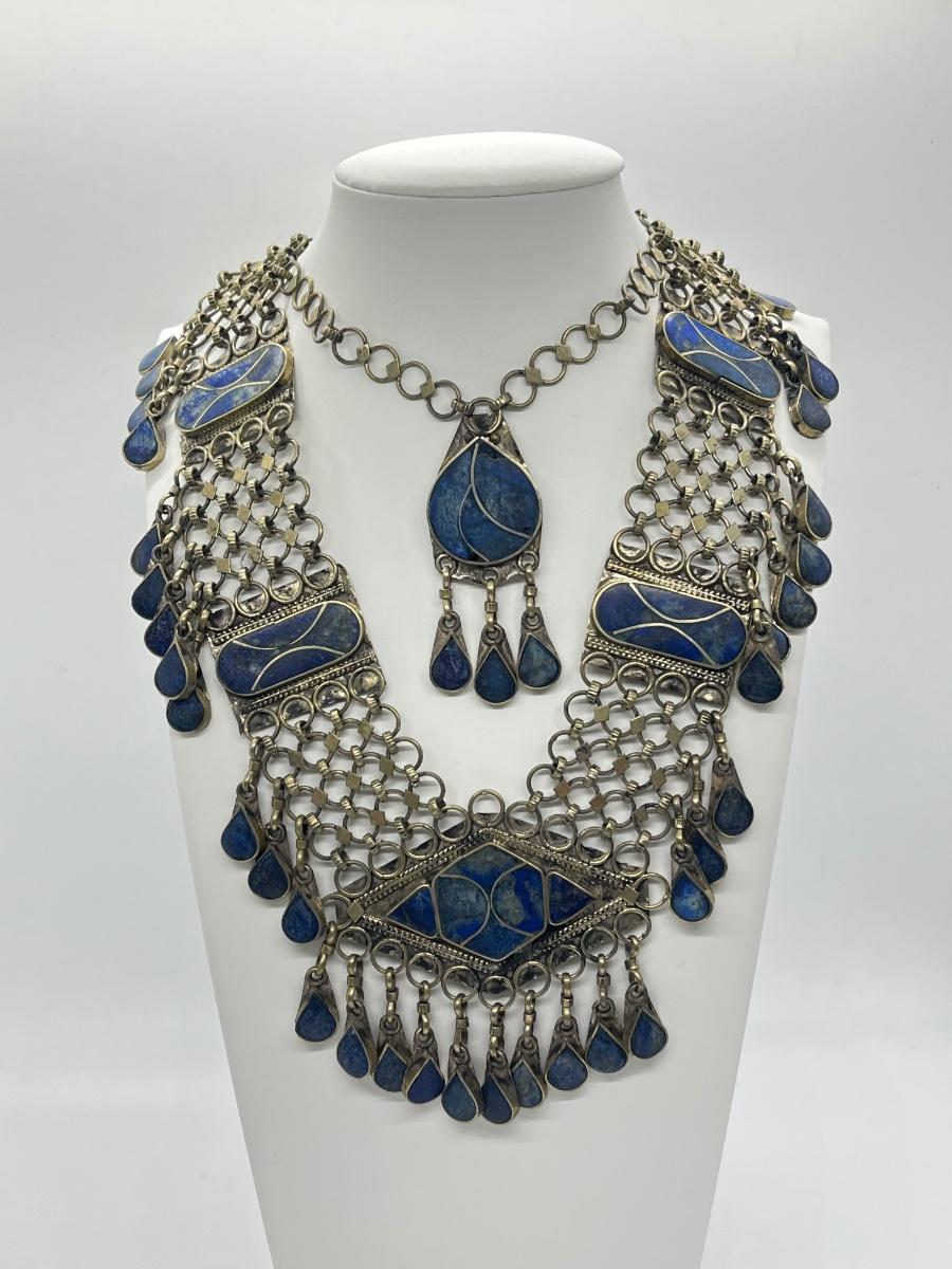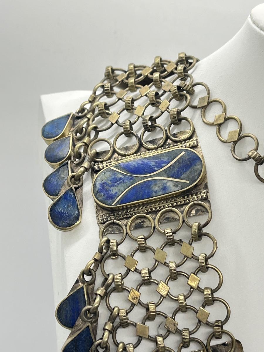LOT 552F: Middle Eastern Jewelry Set - Lapis Lazuli Necklaces, Belly Chain, Cuff Bracelet, Earrings
