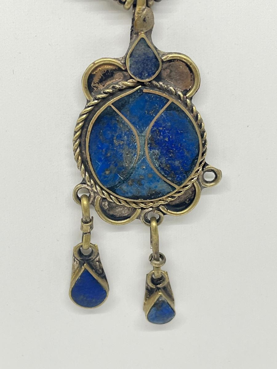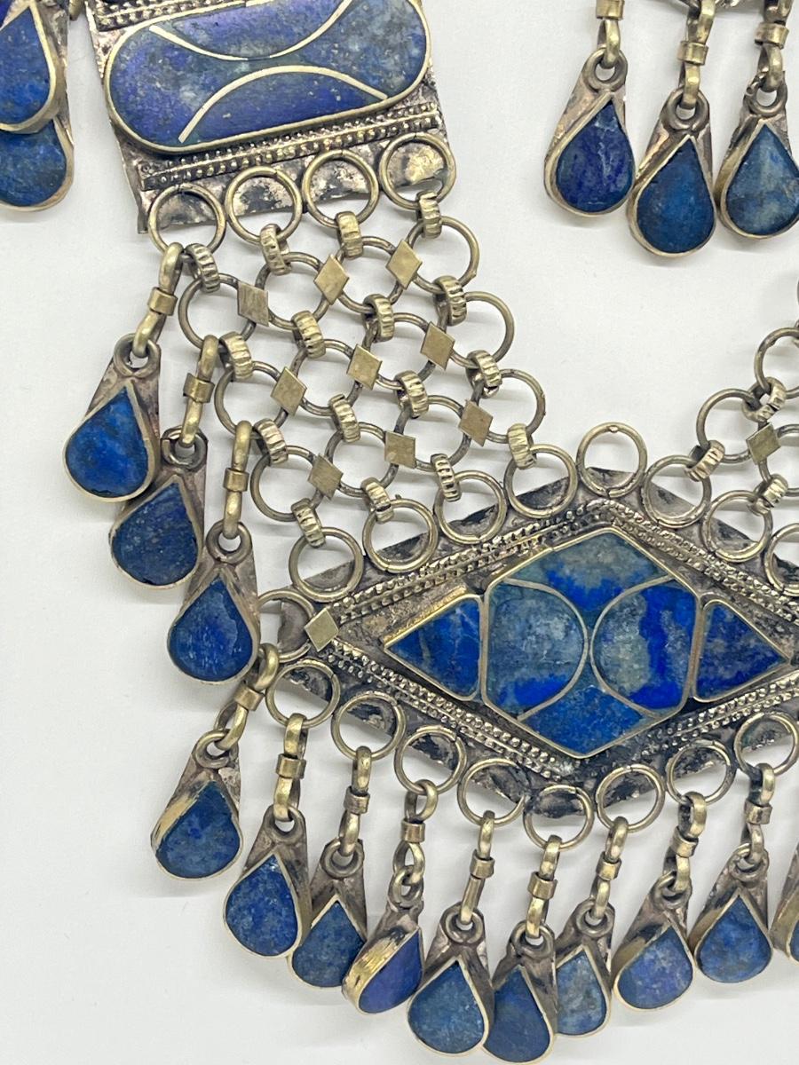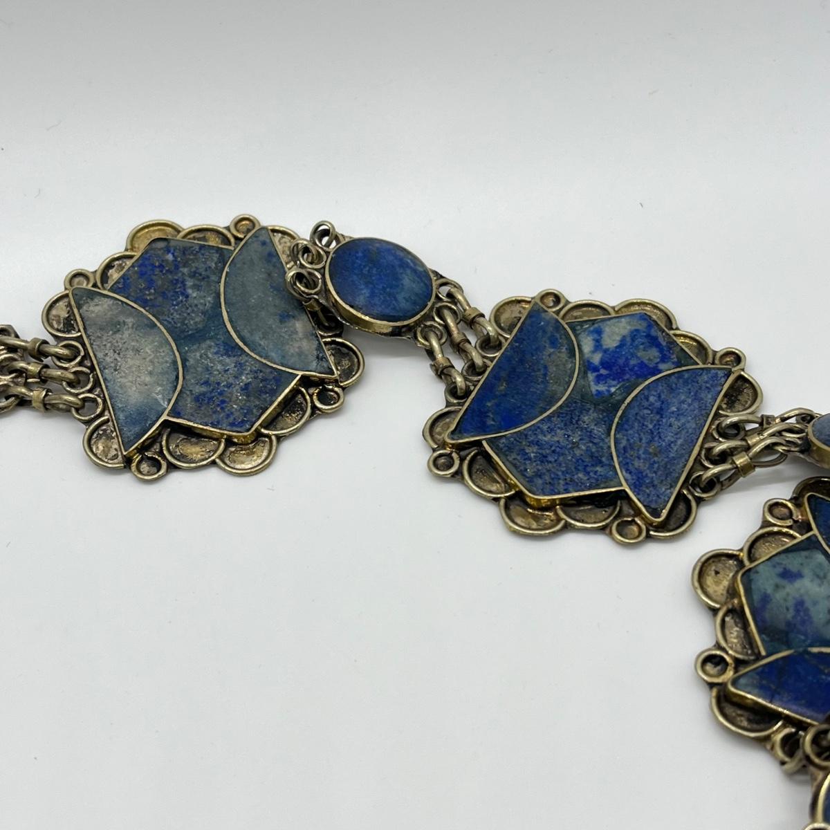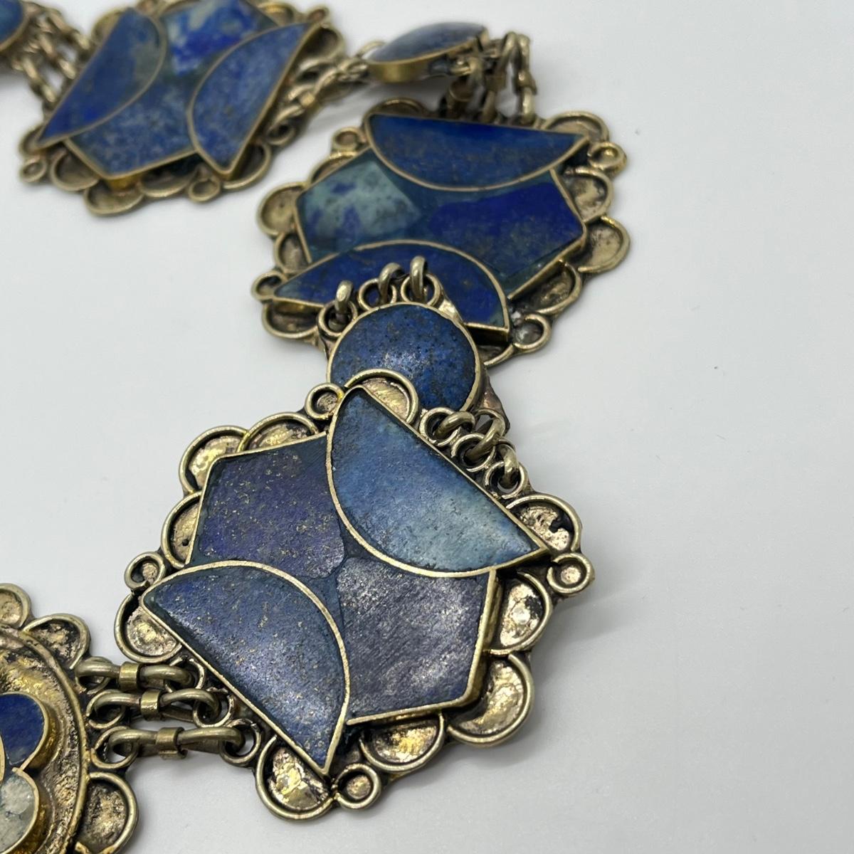 LOT 552F: Middle Eastern Jewelry Set - Lapis Lazuli Necklaces, Belly Chain, Cuff Bracelet, Earrings