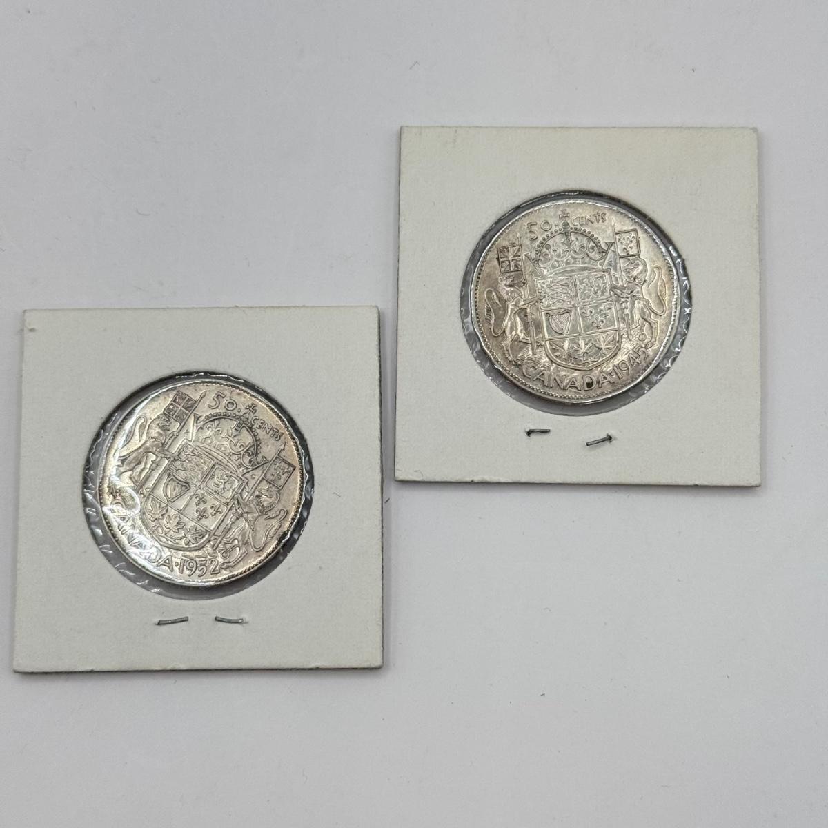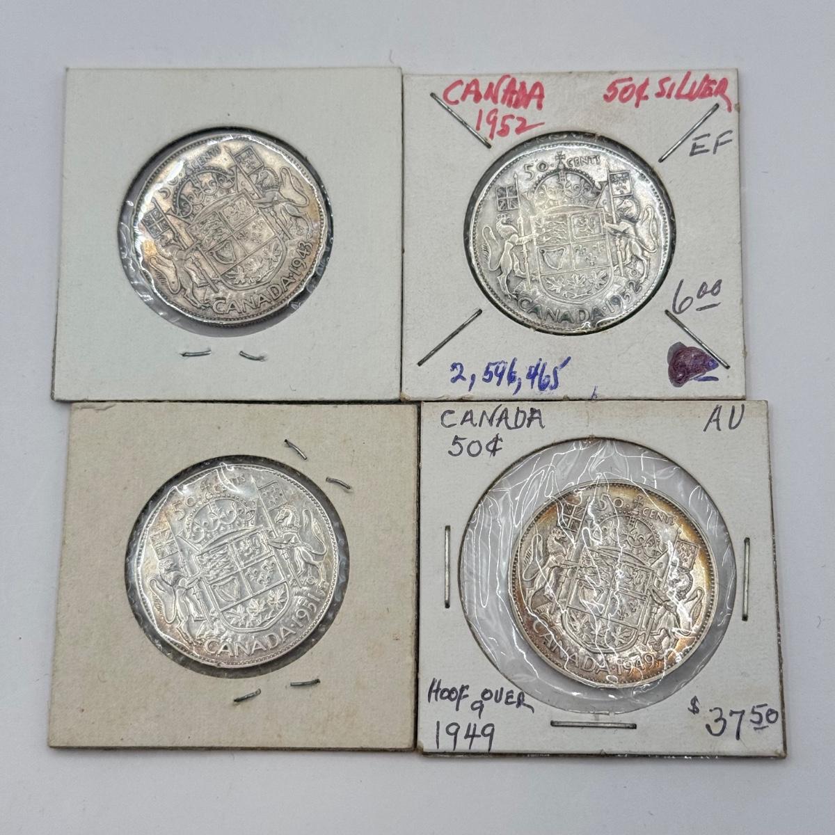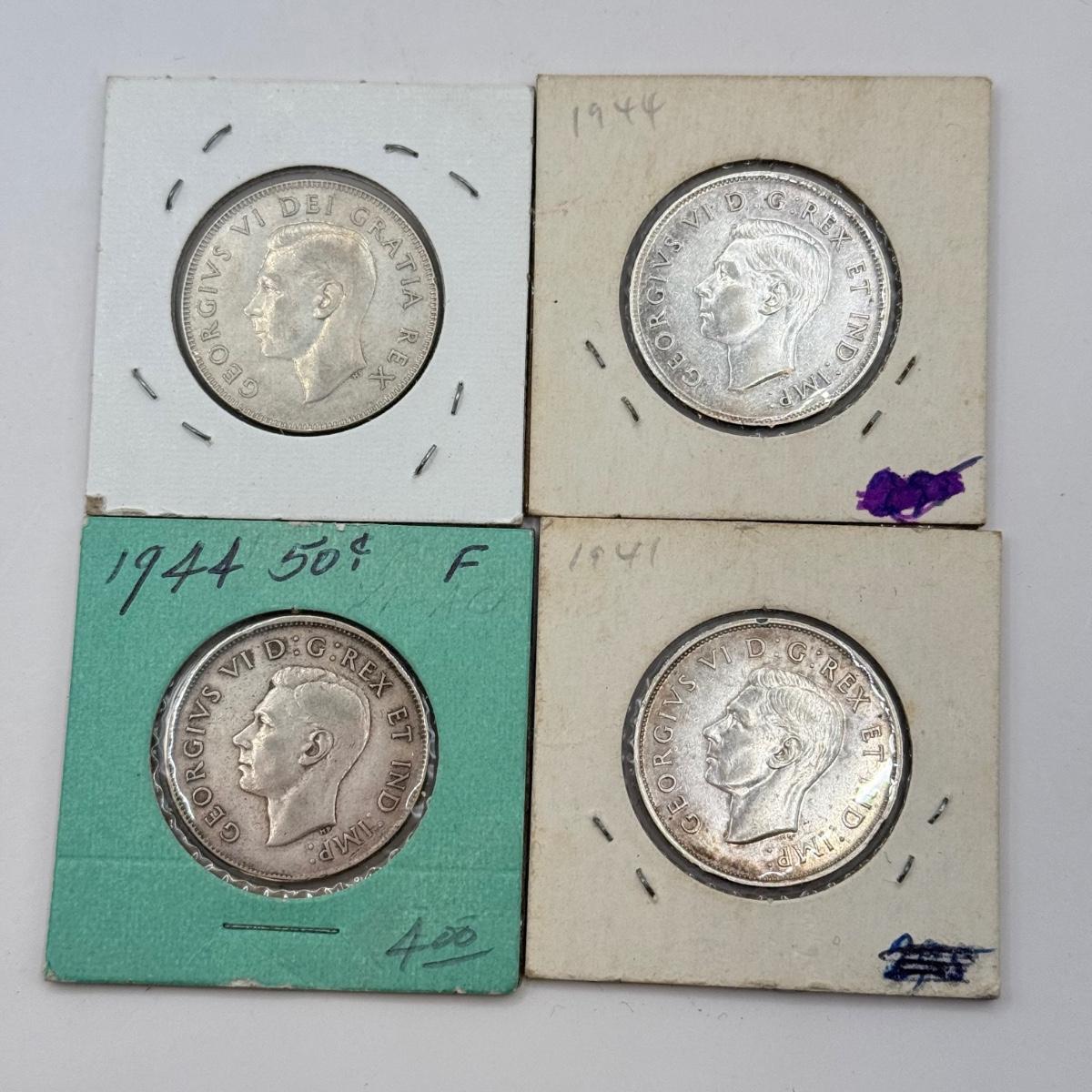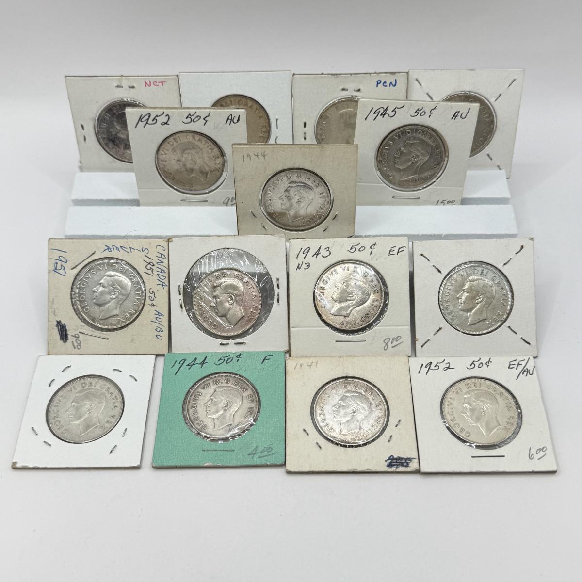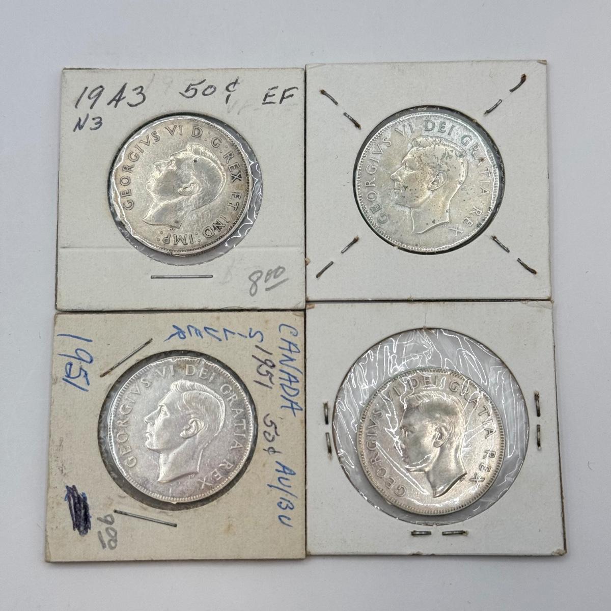 LOT 552J: 1940s-1950s King George VI Canadian 50 Cent Coins (80% Silver, 20% Copper)