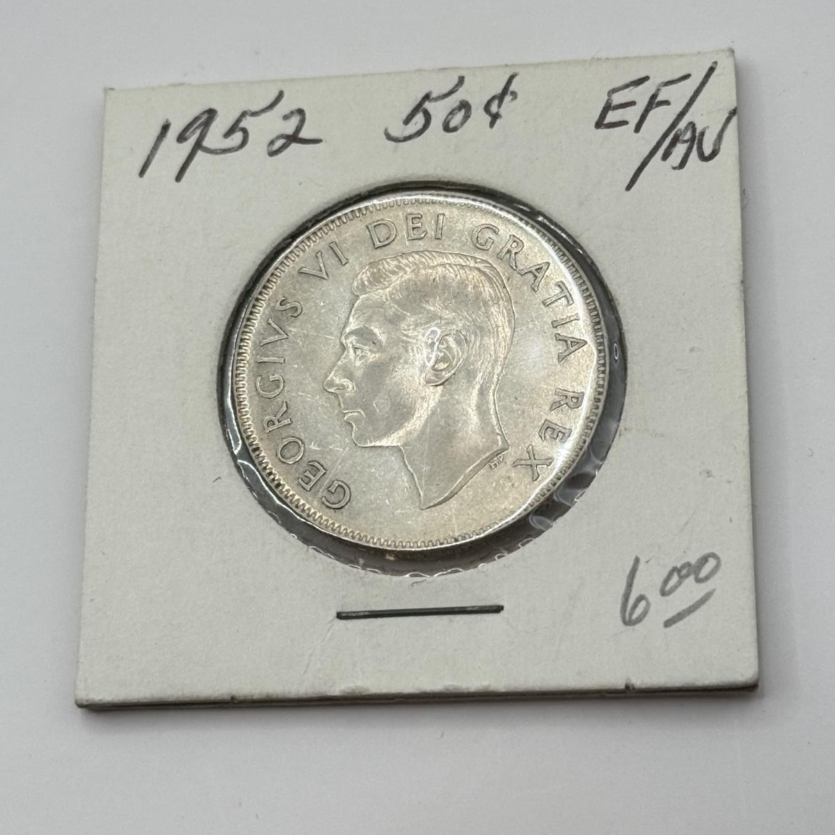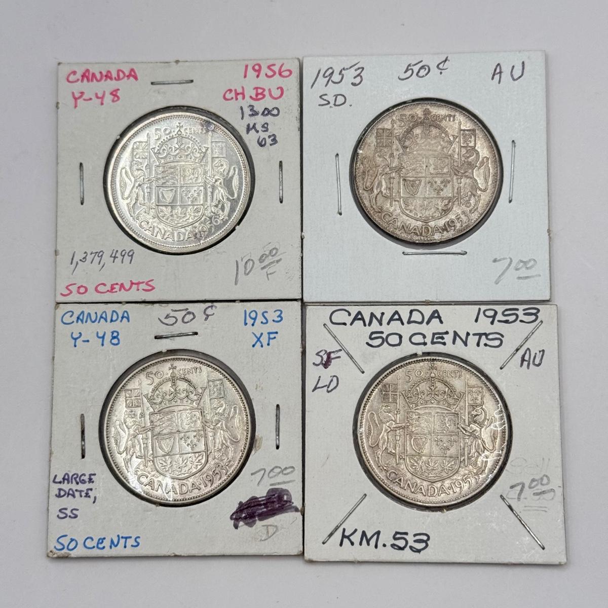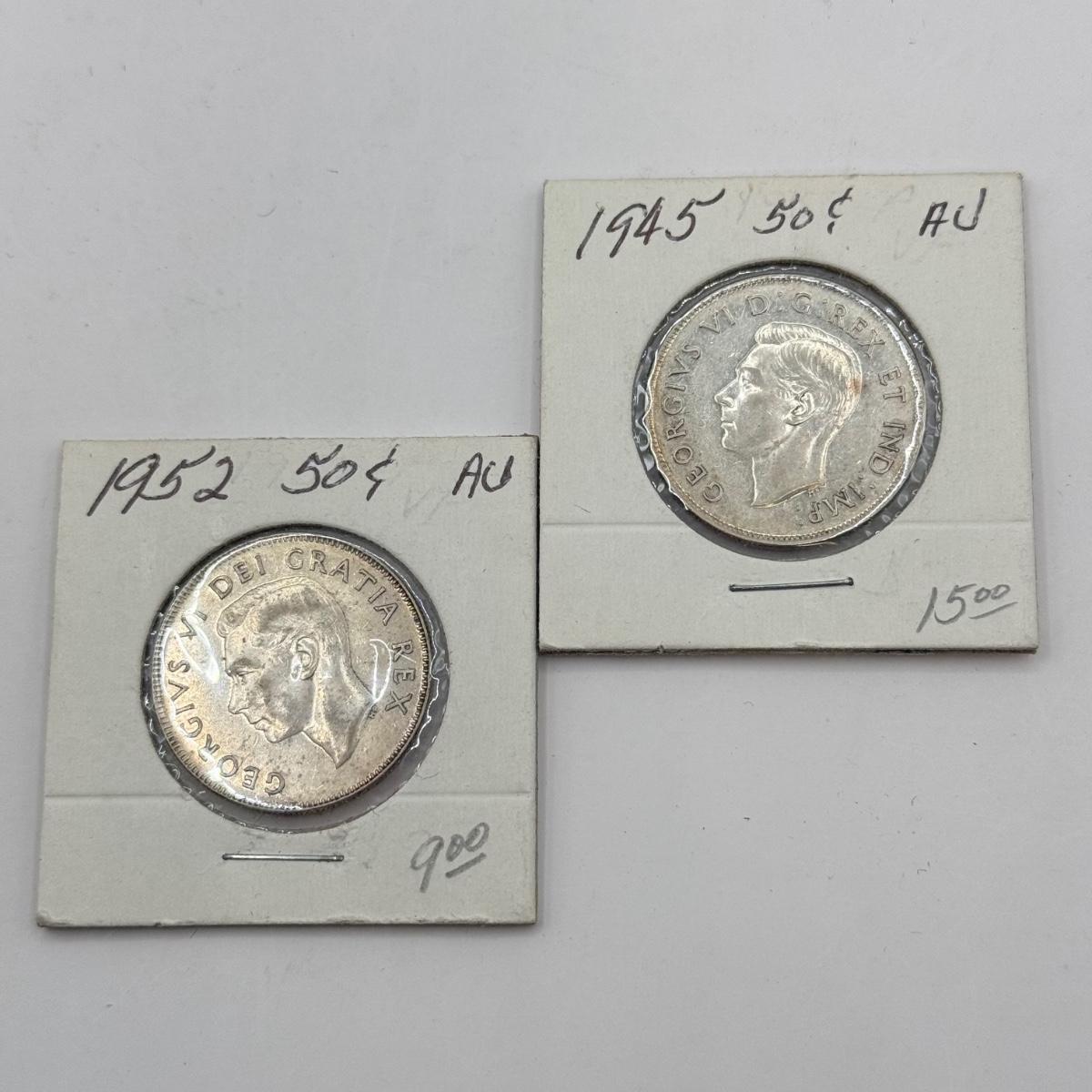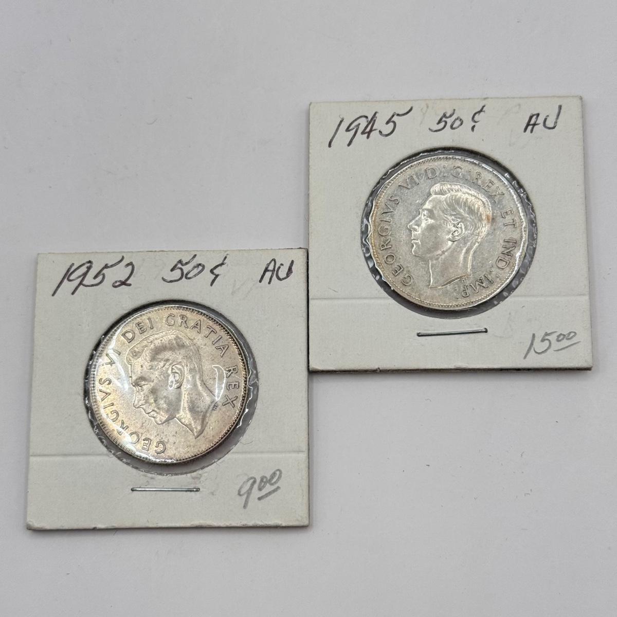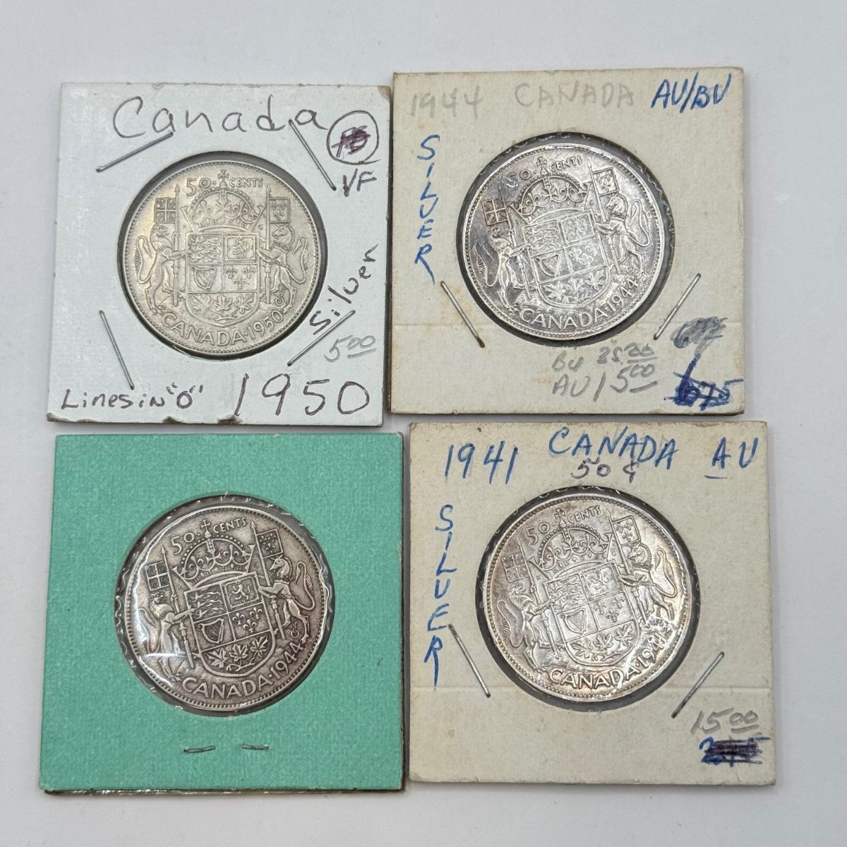 LOT 552J: 1940s-1950s King George VI Canadian 50 Cent Coins (80% Silver, 20% Copper)