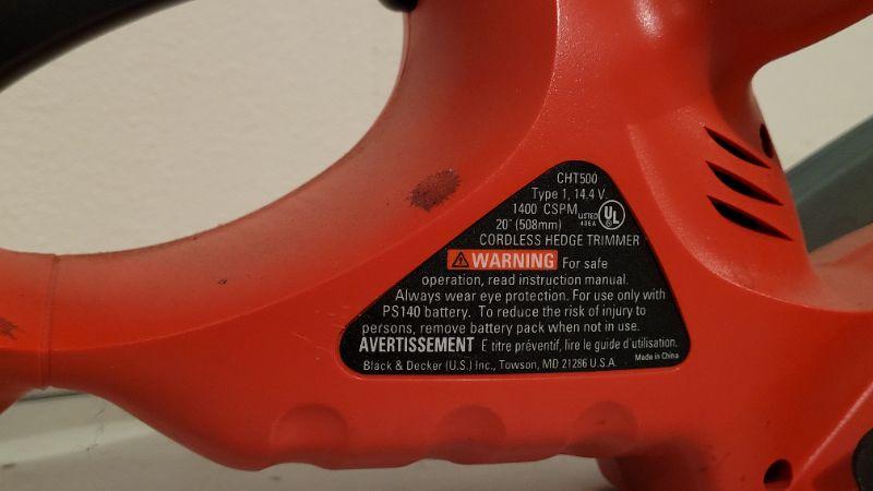 Lot 553: Black and Decker 20" Cordless Hedge Trimmer CHT500 (No Battery)
