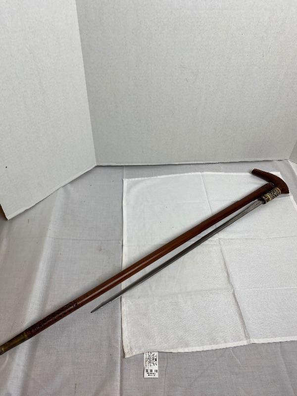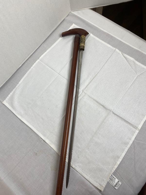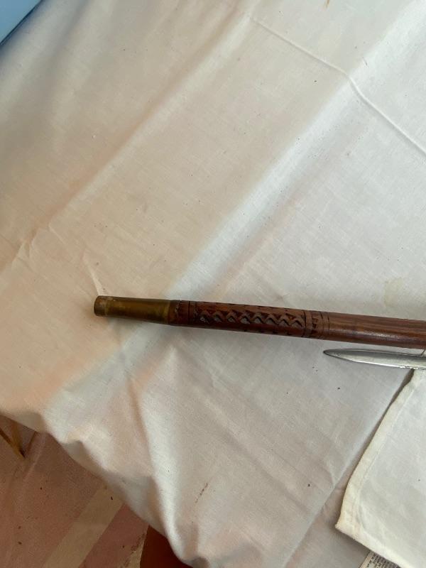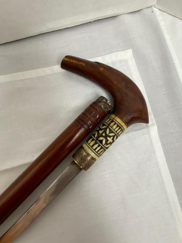 Antique hidden dagger walking stick with bone around the handle brass tip measuring approximately 36 inches Dagger measures 21 inches