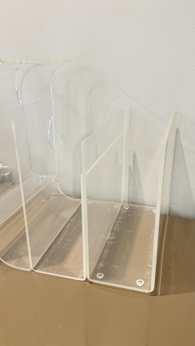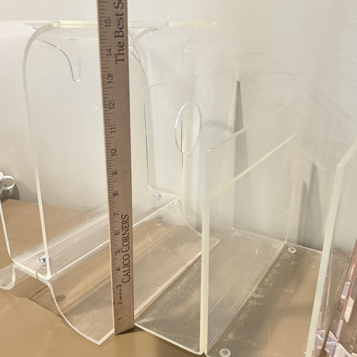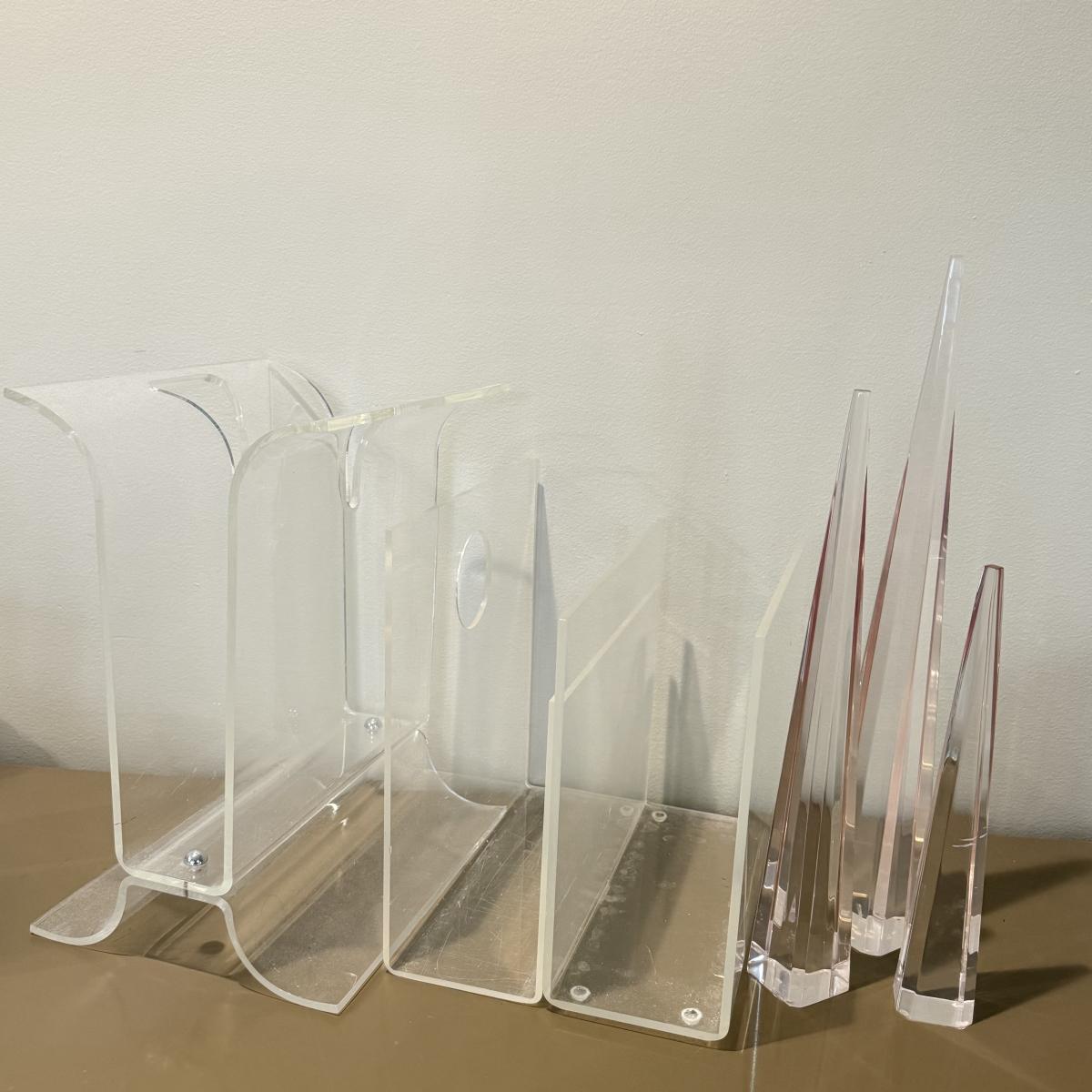LOT 554F: Lucite Magazine Racks & Tower Trio