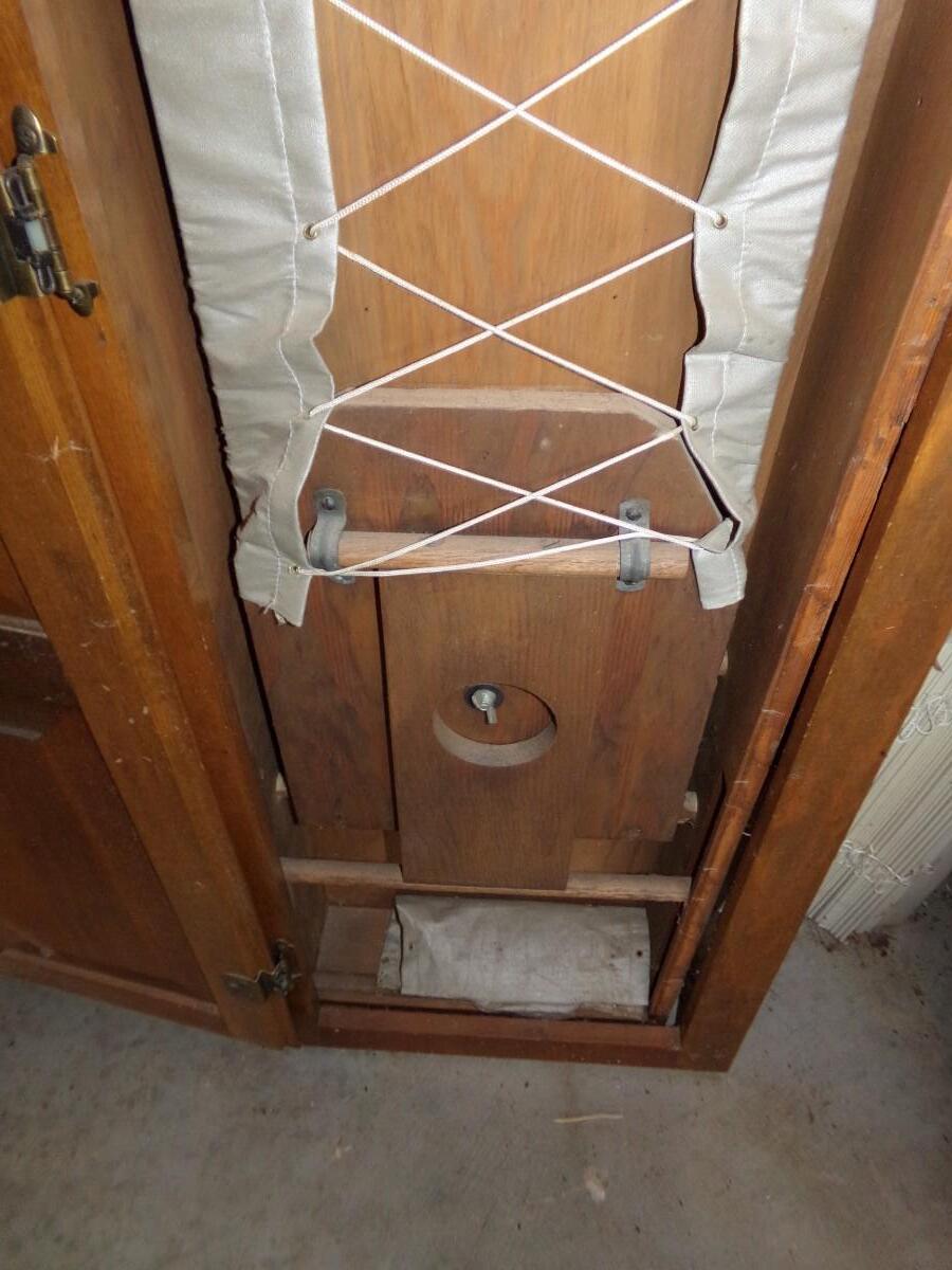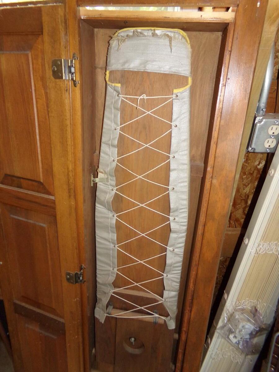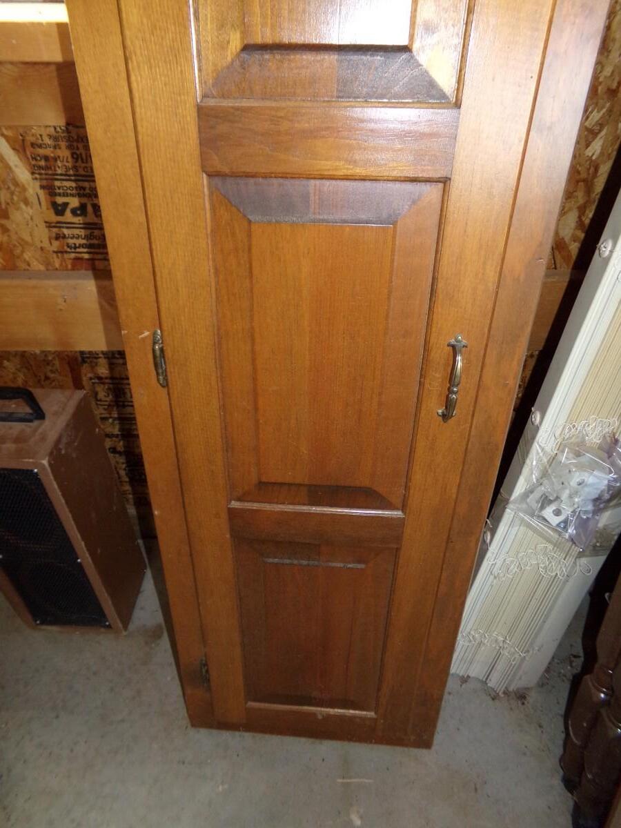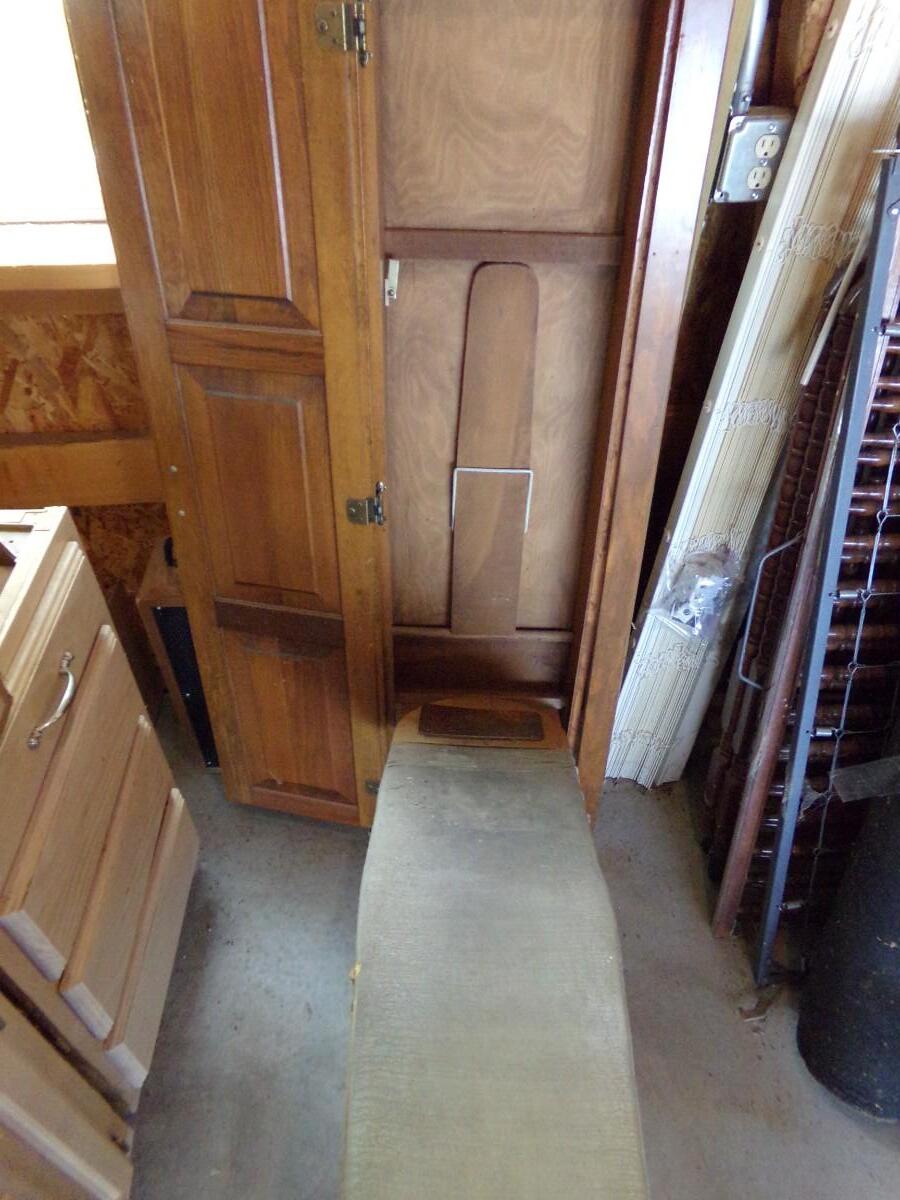 WOODEN CABINET WITH HIDDEN IRONING BOARD.