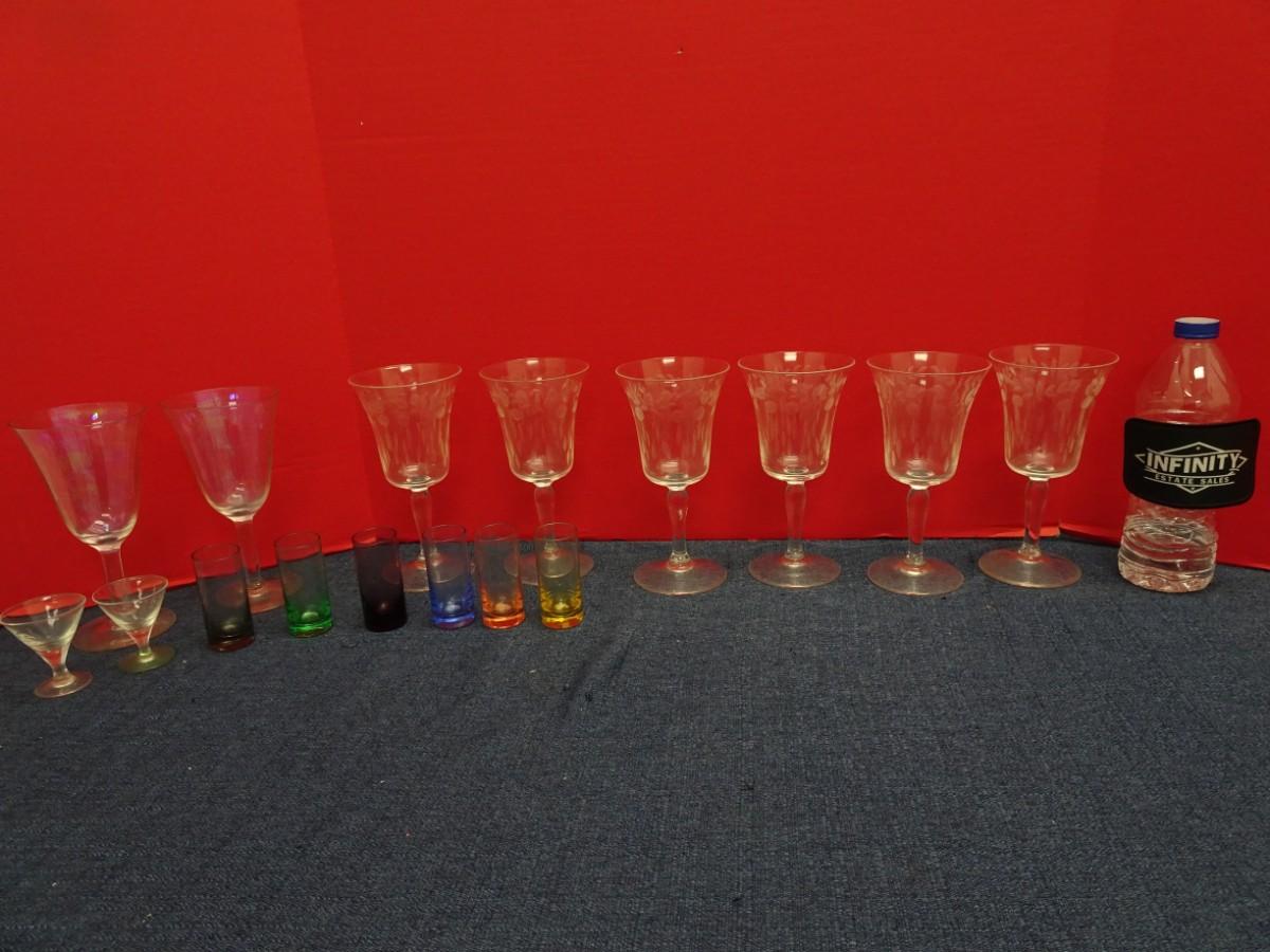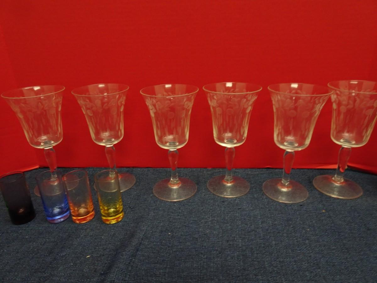 LOT 553. FOOTED GLASSES AND SHOT GLASSES