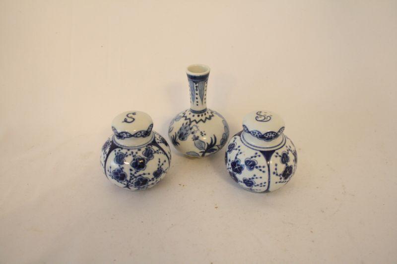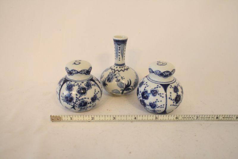 Lot #88: Blue & White Porcelain Salt Shakers and Small Vase Set