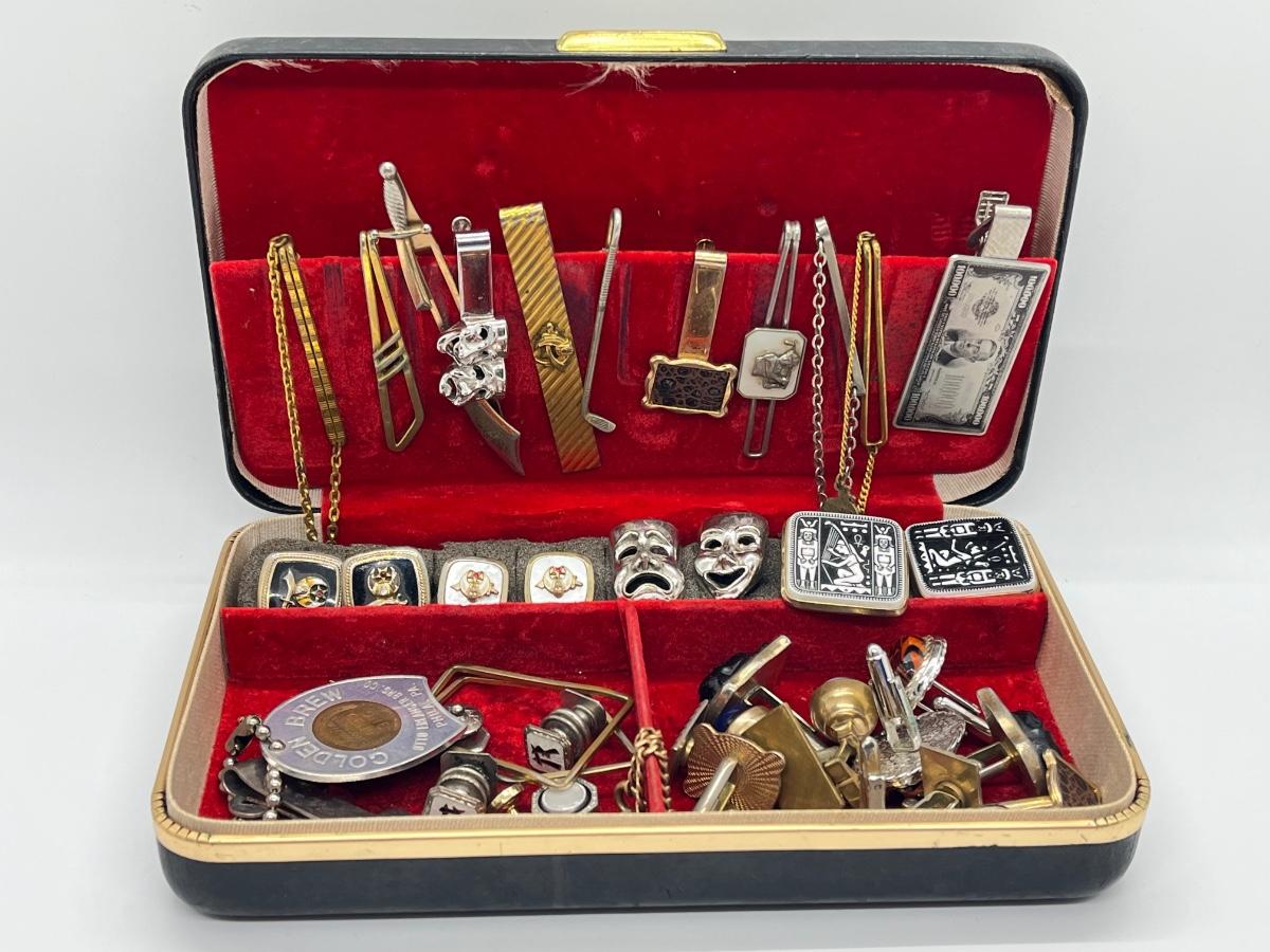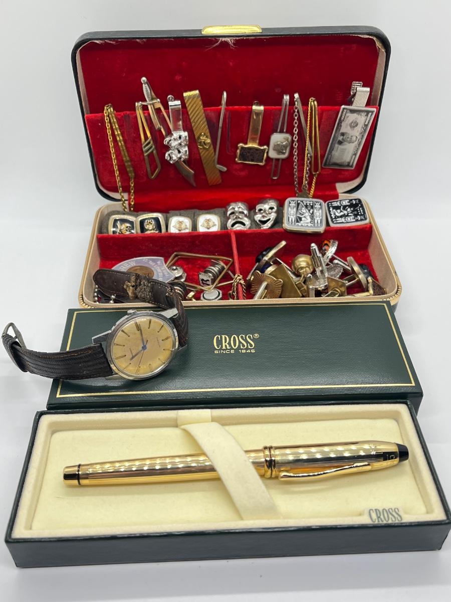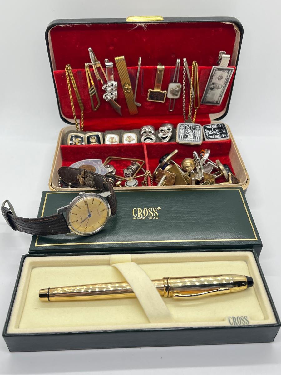 LOT 554F: Men's Jewelry Collection - Cross Pen, Cuff Links, Tie Clips and More