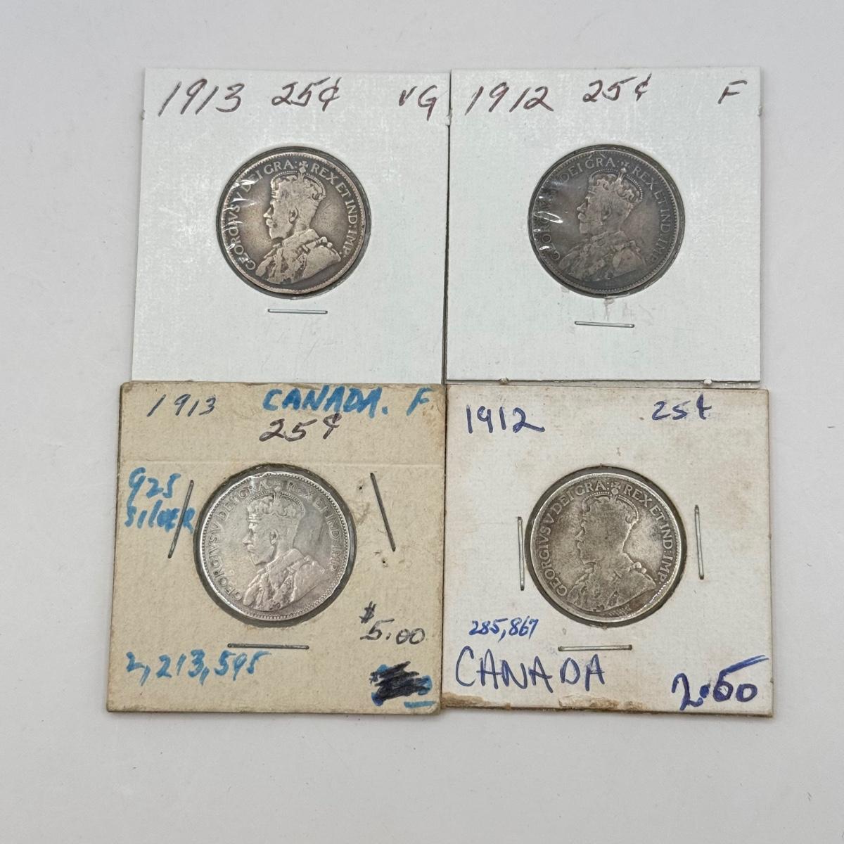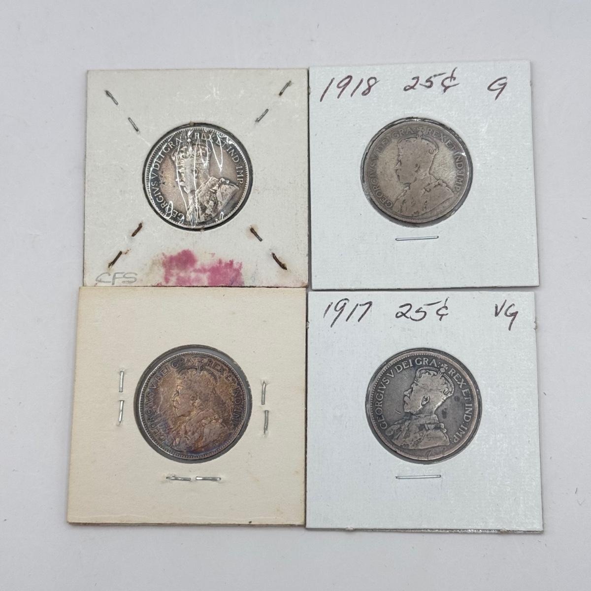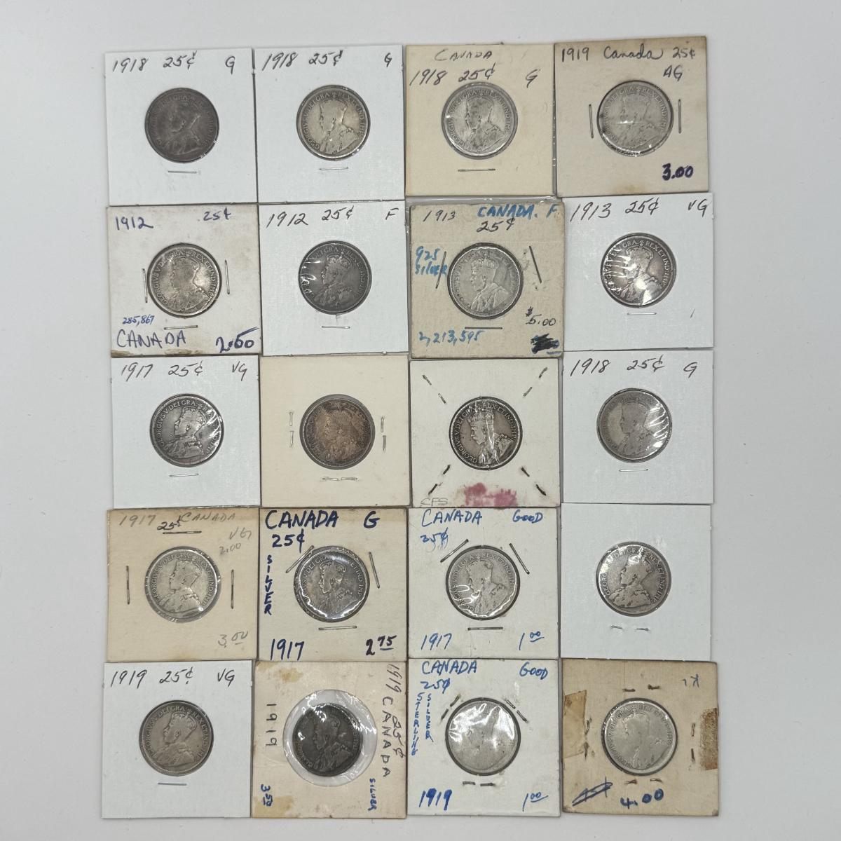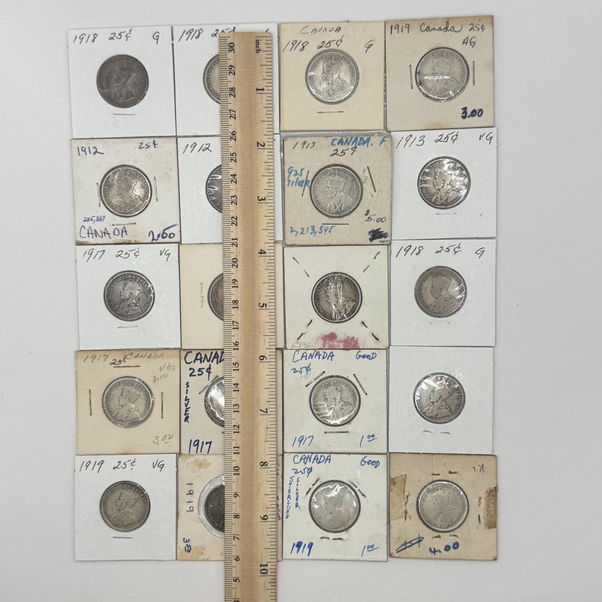 LOT 554J: 1871-1919 Canadian Quarters 25 Cent Coins (92% Silver)