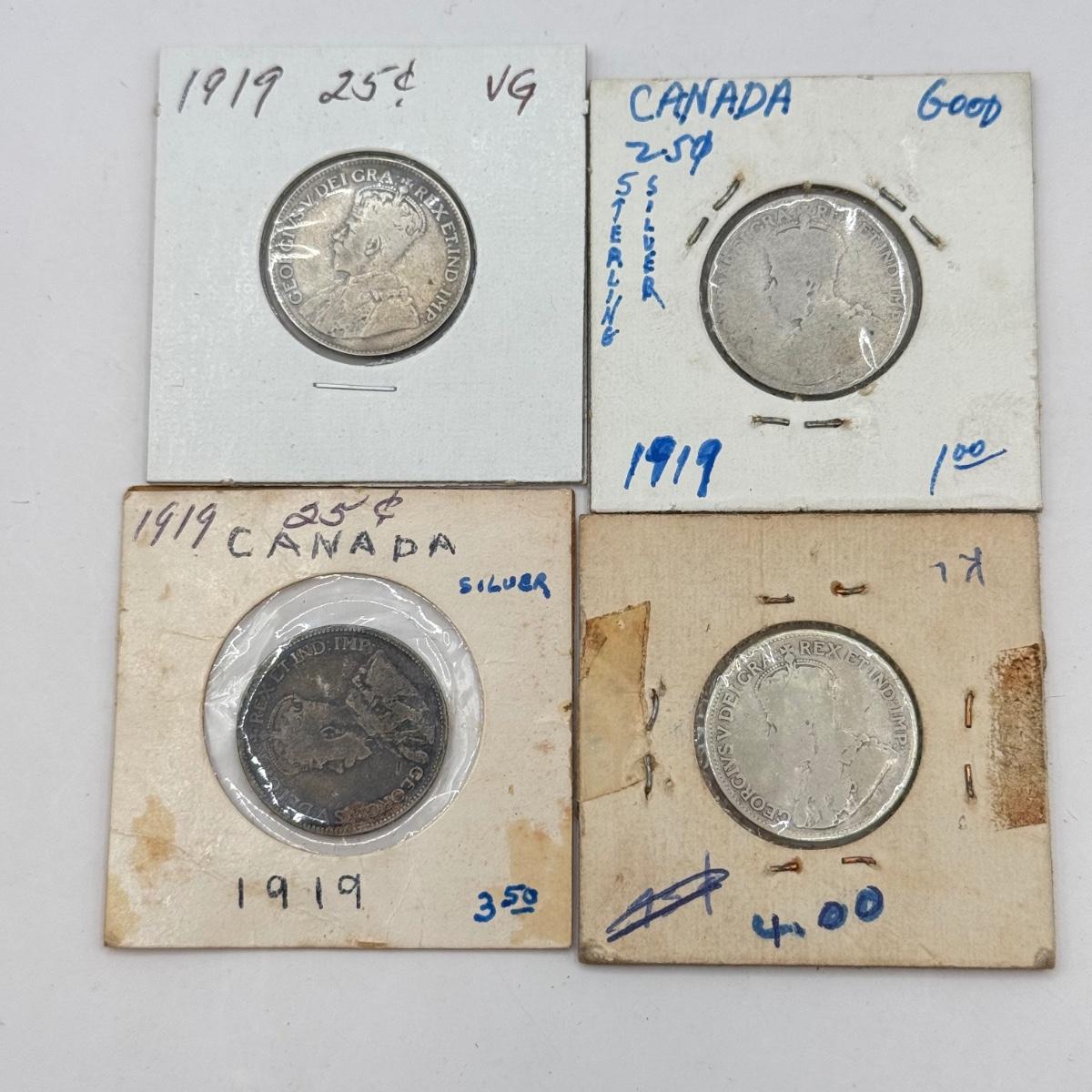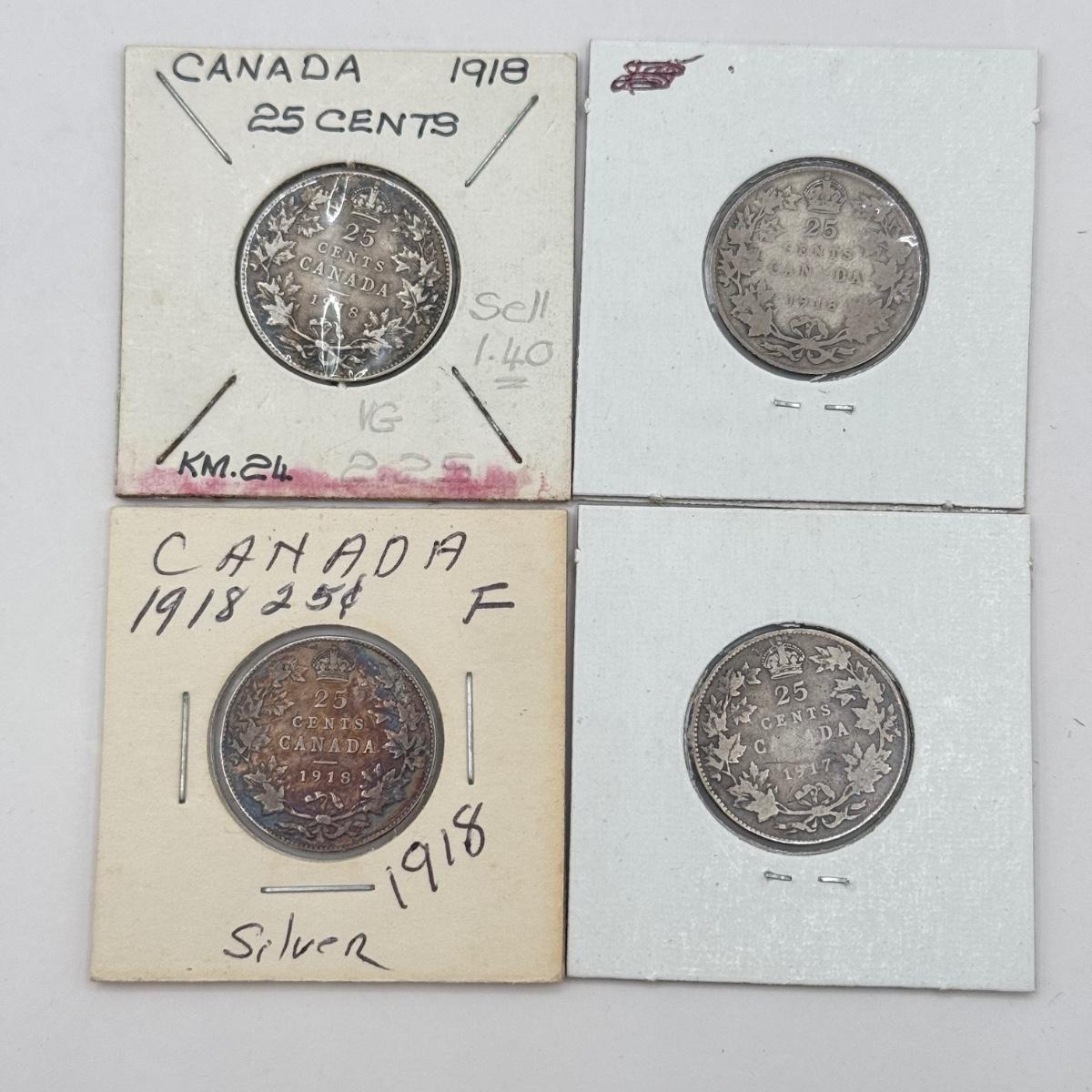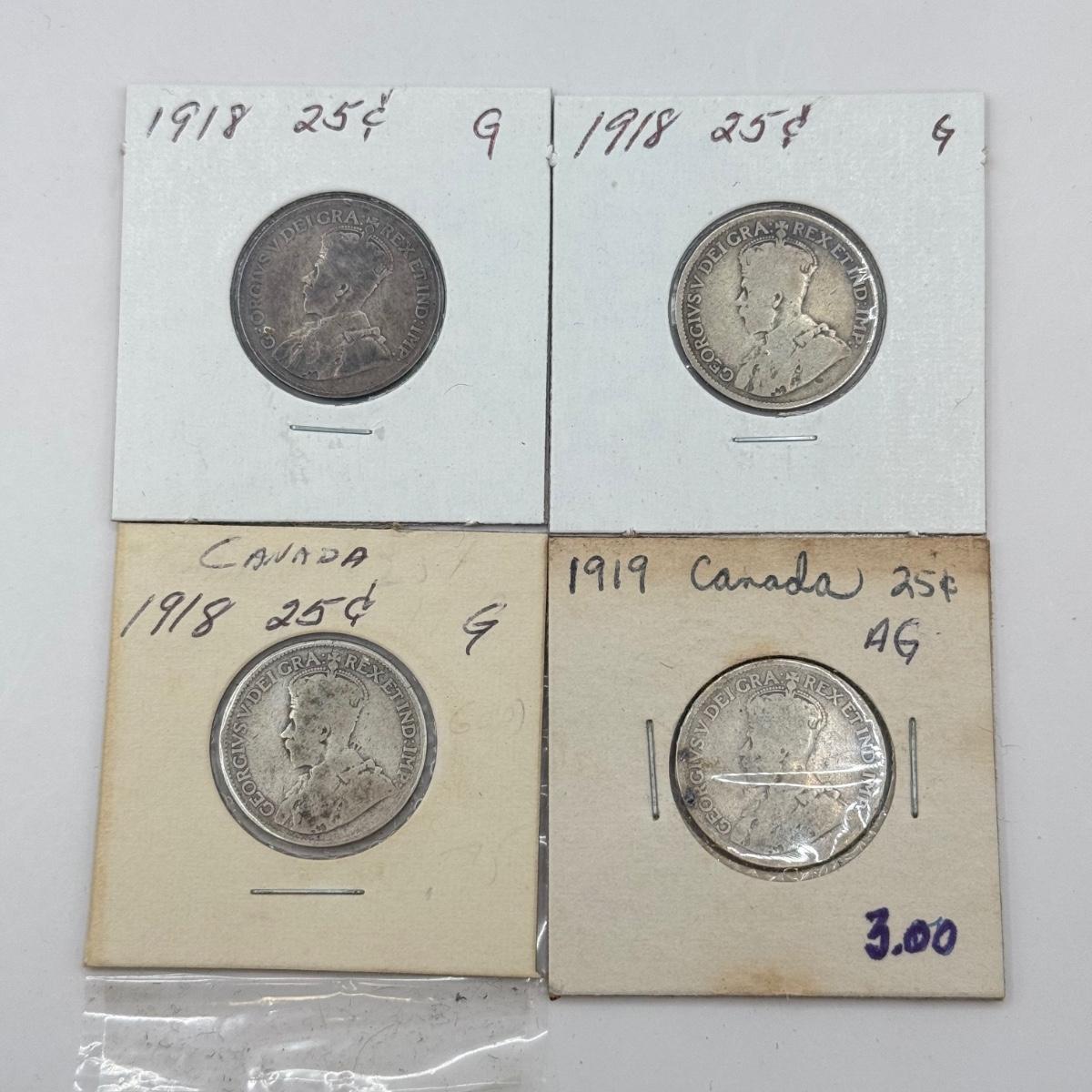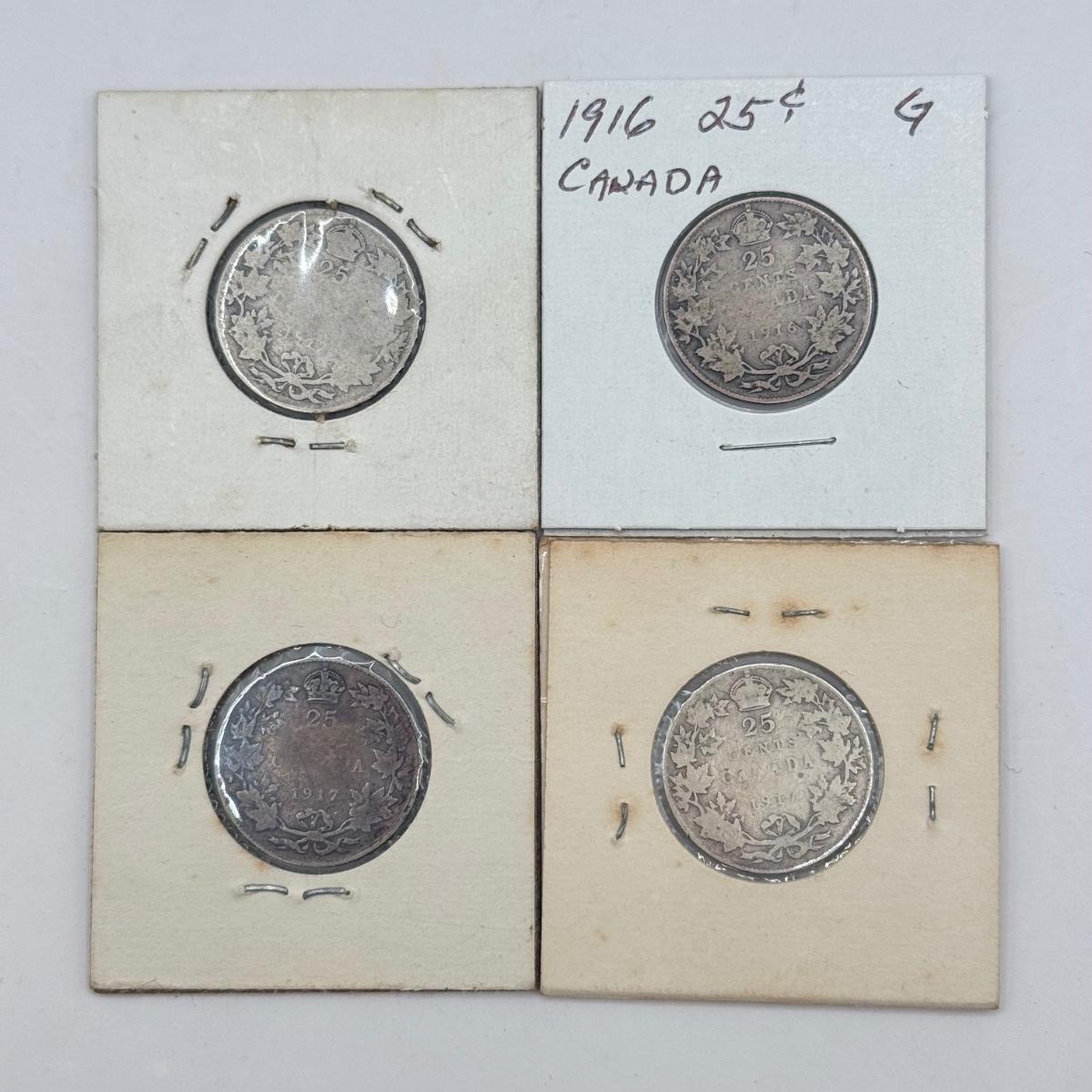 LOT 554J: 1871-1919 Canadian Quarters 25 Cent Coins (92% Silver)