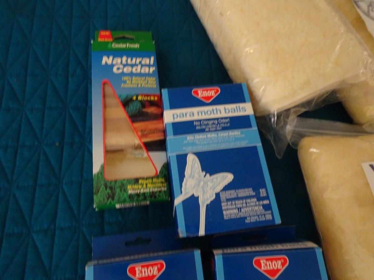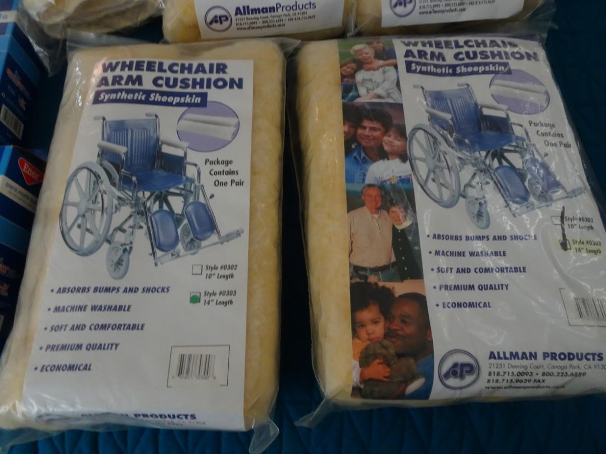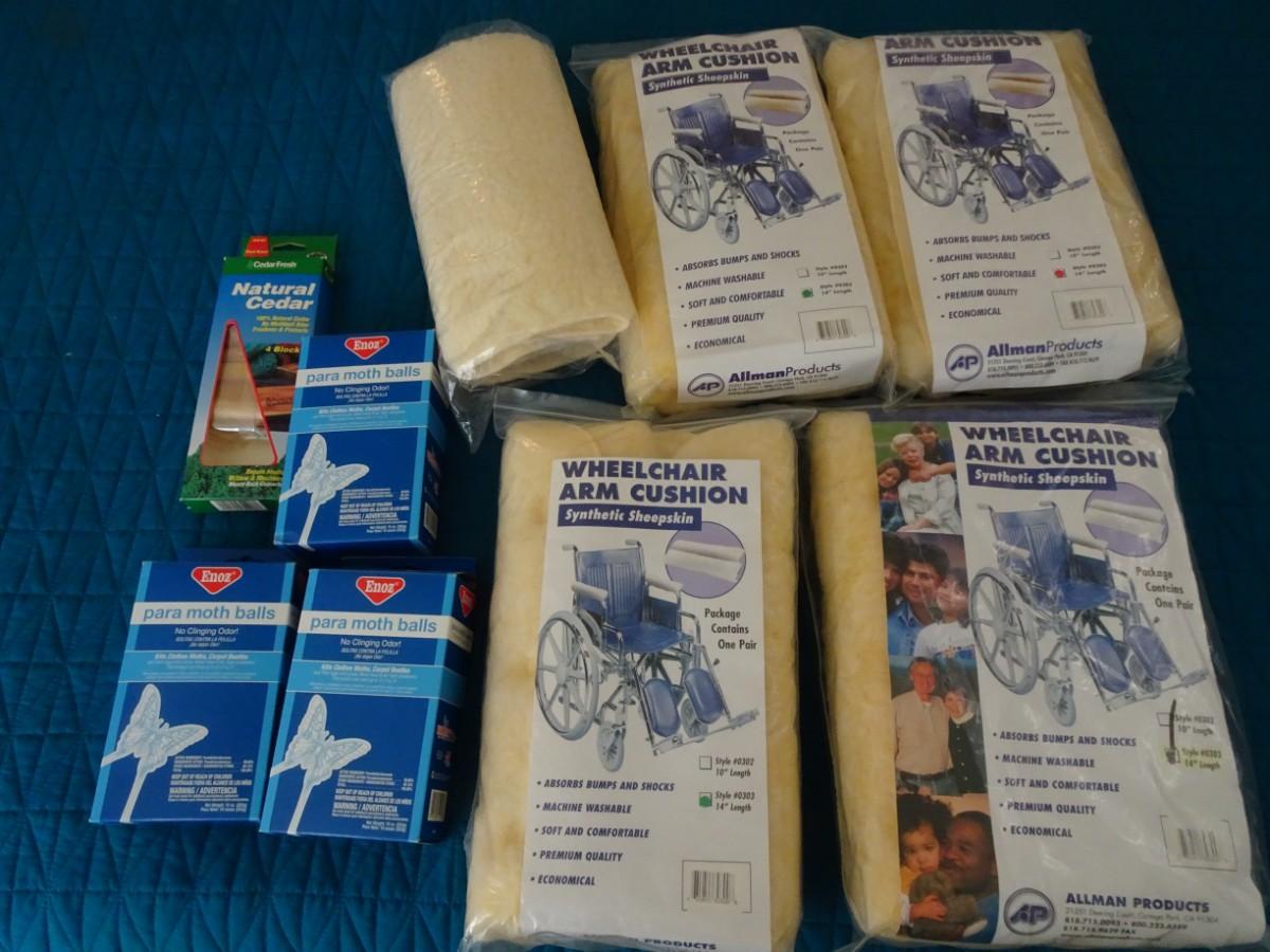 LOT 557 WHEEL CHAIR ARM CUSHIONS, MOTH BALLS A CEDAR PIECES