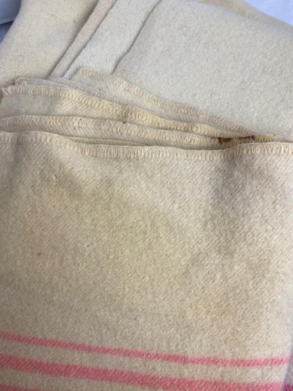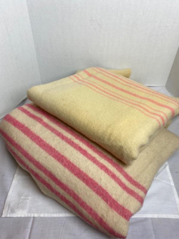 2 Vintage Mac AUSLANDS Woolen Mills Raw Wool Blankets, both have pink stripes