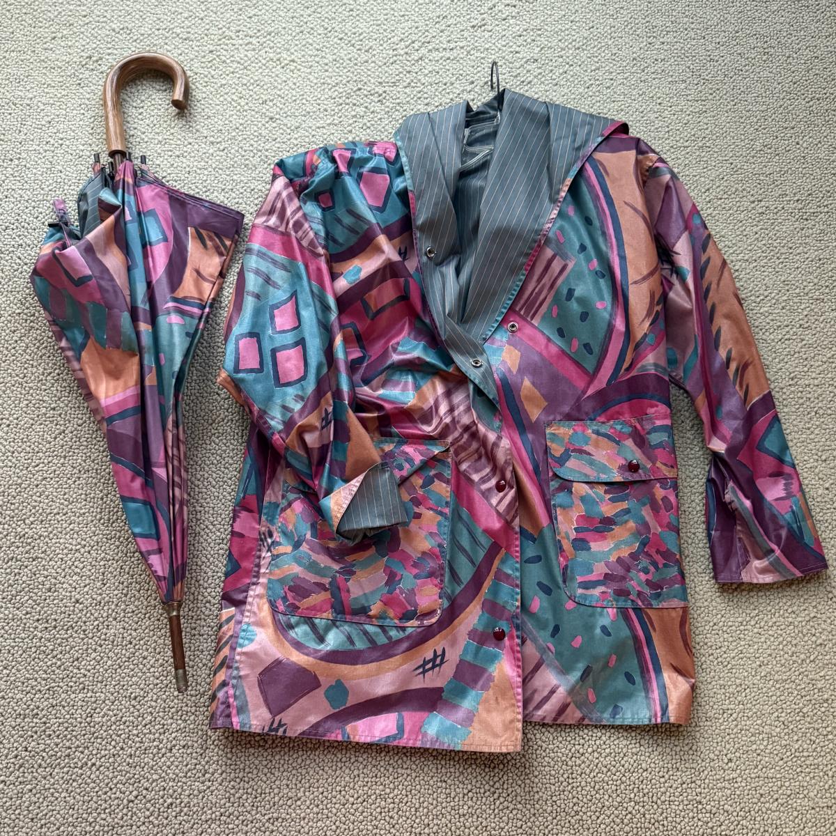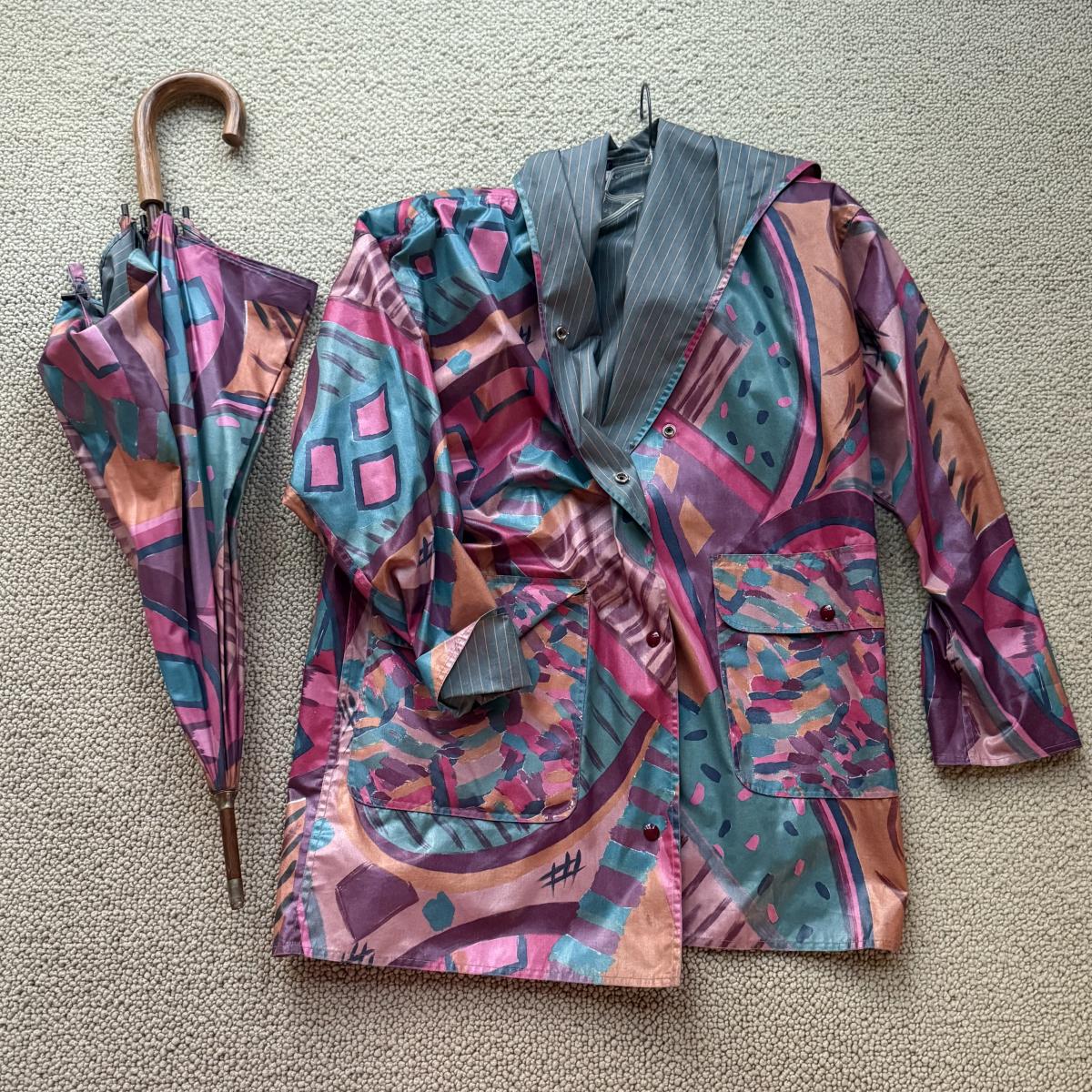 LOT 557DC: Marylou Ozbolt Storer Fibre Arts Matching Raincoat & Umbrella
