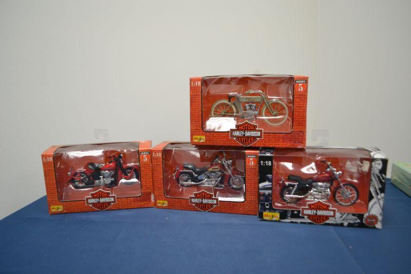 FOUR HARLEY DAVIDSON MOT0RCYCLE COLLECTIBLES