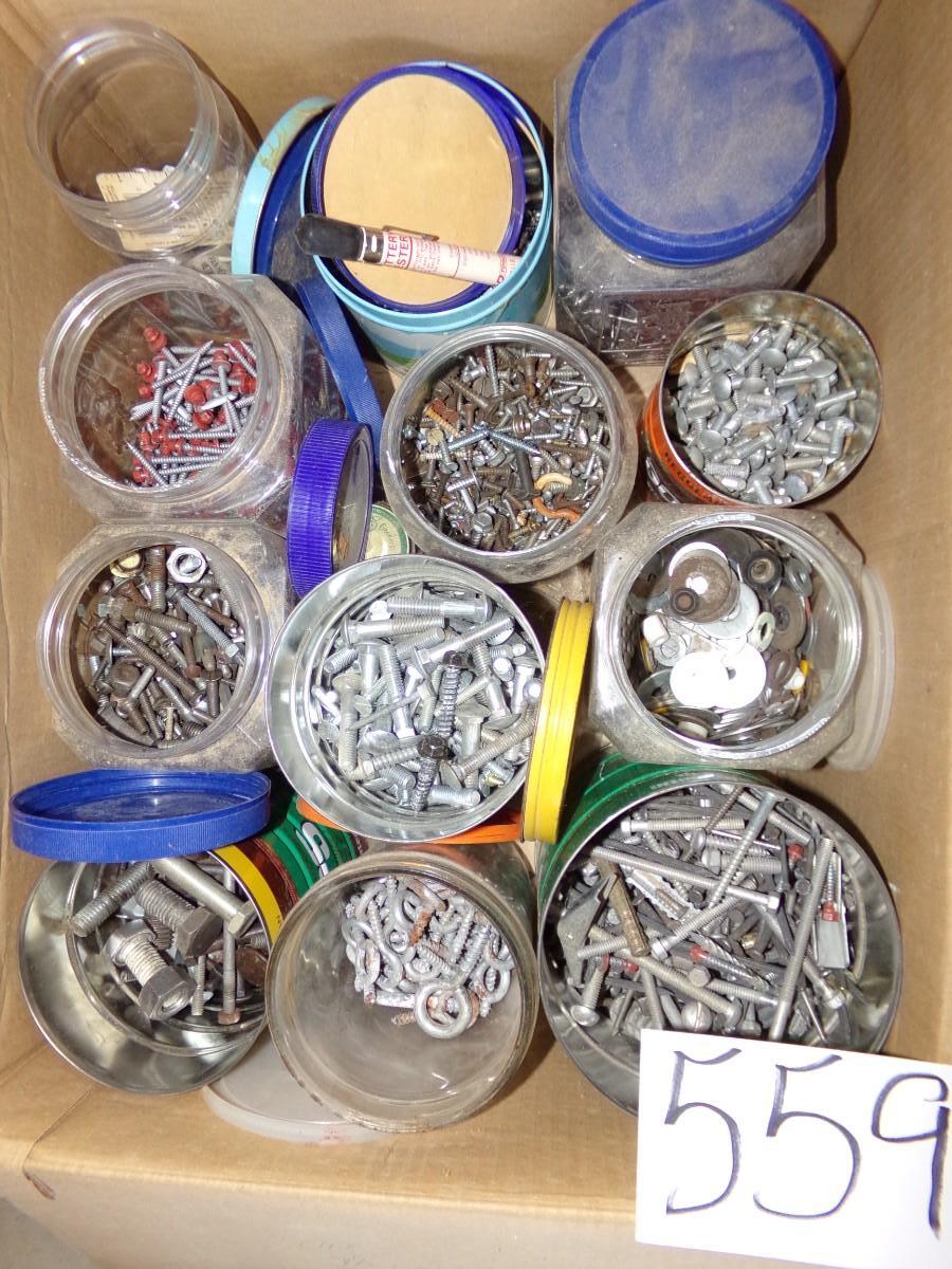 LARGE LOT OF HARDWARE, NAILS, SCREWS AND SO MUCH MORE.