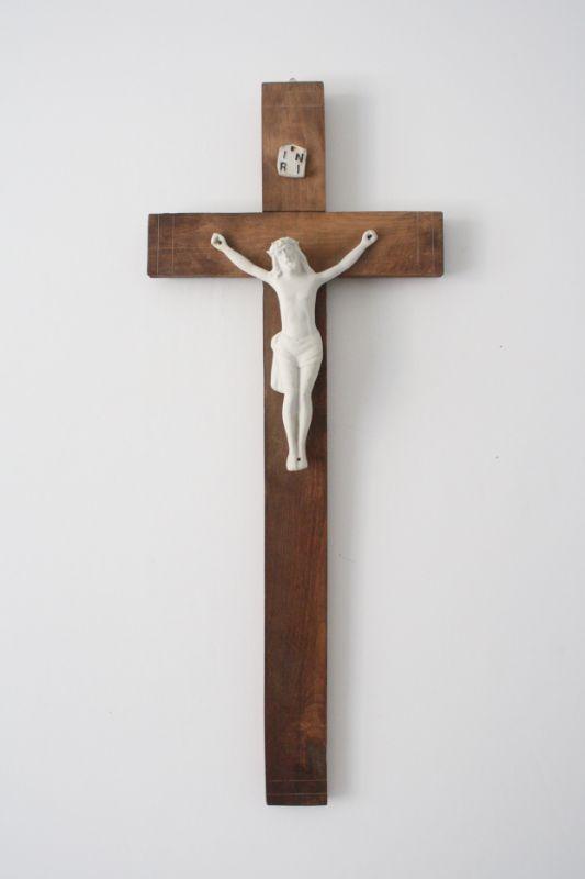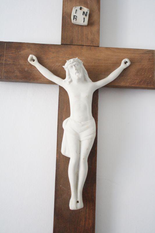 Lot #194: Vintage Wooden Crucifix Ceramic Jesus