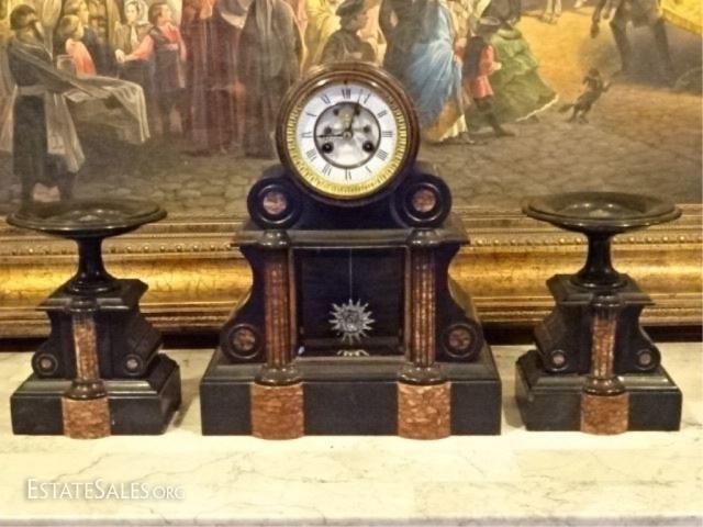 LOT 55A: 19TH CENTURY FRENCH BLACK MARBLE CLOCK GARNITURE