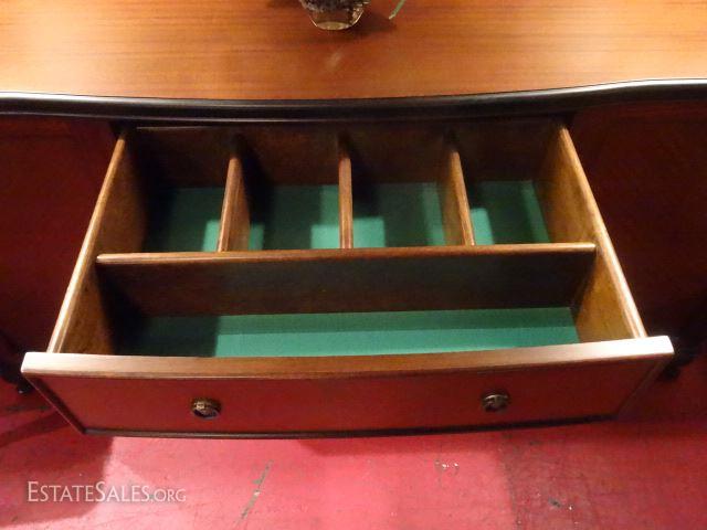 LOT 55B: WOOD SIDEBOARD, 4 DRAWERS FLANKED BY TWIN CABINETS, BREAKFRONT SOLD SEPARATELY THIS AUCTION, VERY GOOD GENTLY USED CONDITI0N, 68" X 37" X 19", SKU965.04