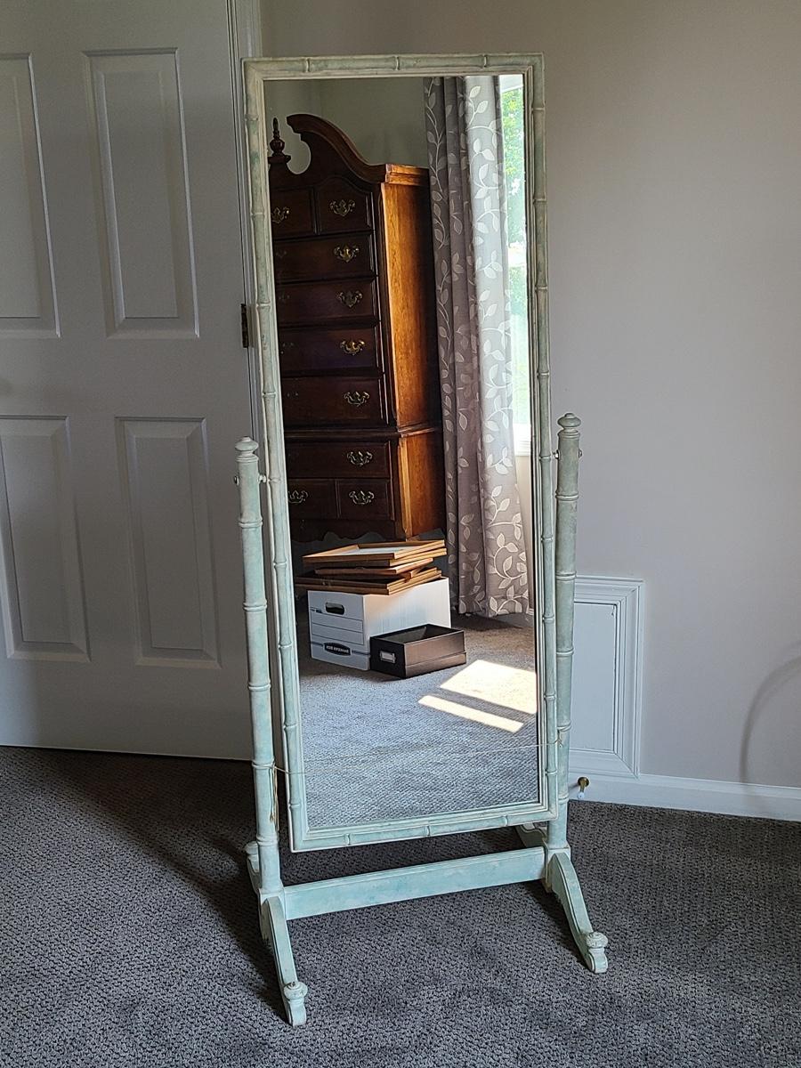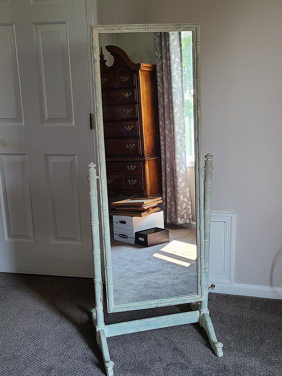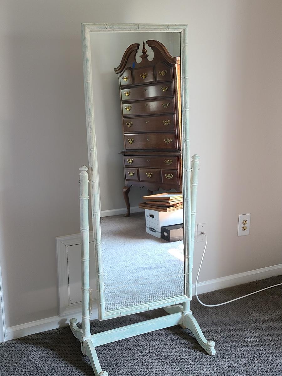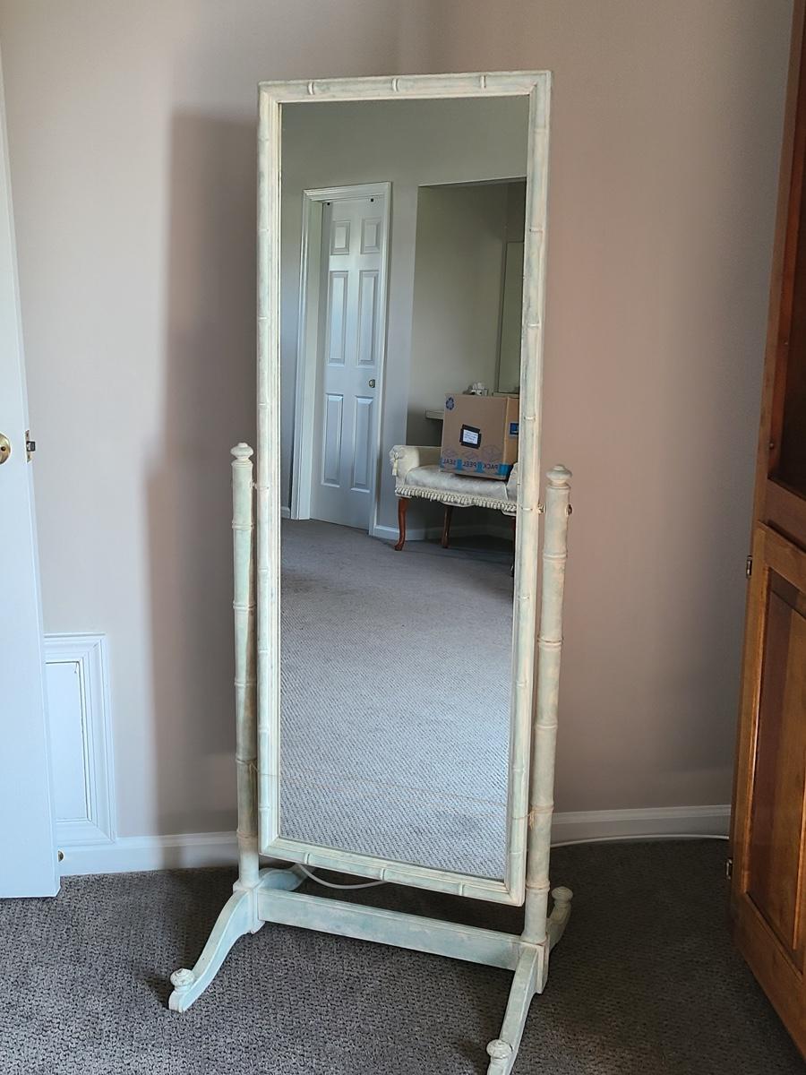 Lot 55UX: Vintage Bamboo/Wood Framed Standing Mirror (Up-Cycle Me)