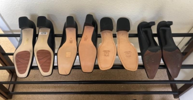 Lot 55U. Used Yves Saint Laurent heels, size 9.5 medium; Stuart Weitman slides (new), size 10; black pumps, size 10B; blue pumps, size 10B; Cressa blue pumps, size 10M; Carvela, size 40 (new)--$175