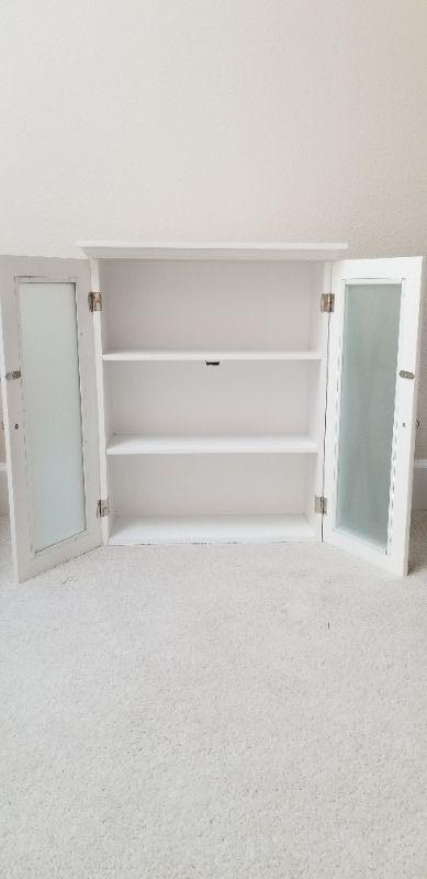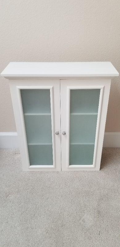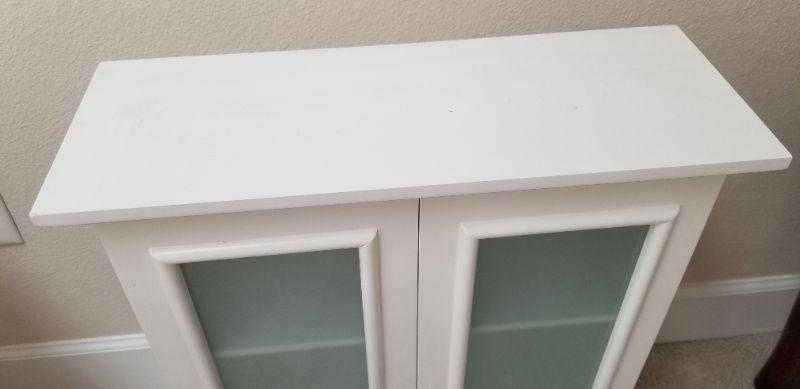 LOT 56: White Storage Cabinet w/ Frosted Double Doors