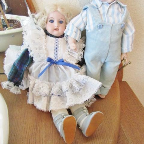LOT 56  BOY AND GIRL PORCELAIN DOLLS