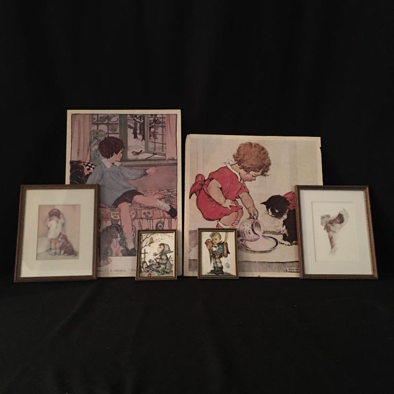 A great find for your child or grandchild’s room. These six prints are sure to put a smile on your face. Includes two framed and matted prints by Bessie Gutmann, two framed prints, Jennie Wilcox Smith print and a print by Anne Anderson. Largest print measures 13” x 19”.