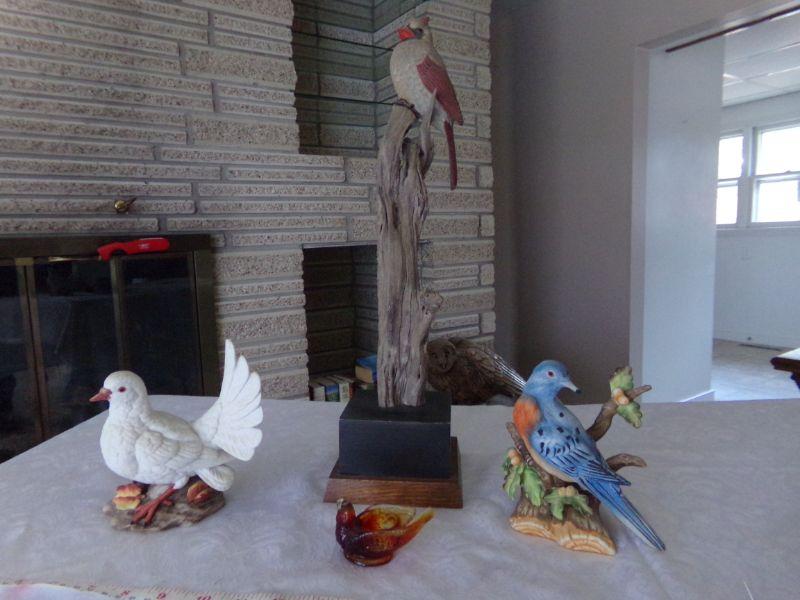 THE WHITE BIRD IS BY GORHAM, THE BLUE BIRD IS FROM LONDON AND IS NUMBERED 5344/15000. THERE IS AN IRIDESCENT COLORED BIRD AND A BIRD ON A BRANCH. ALL ARE IN VERY GOOD CONDITION.