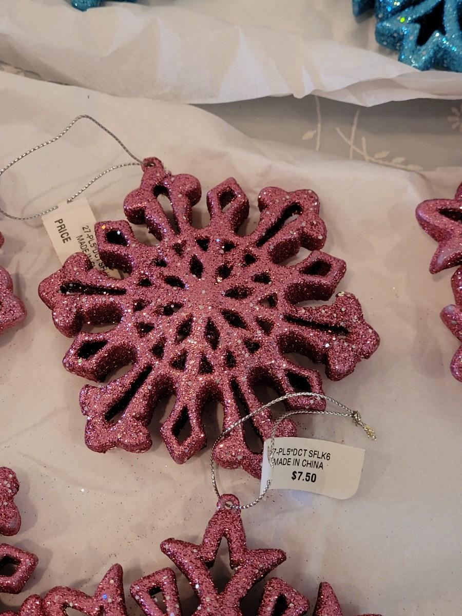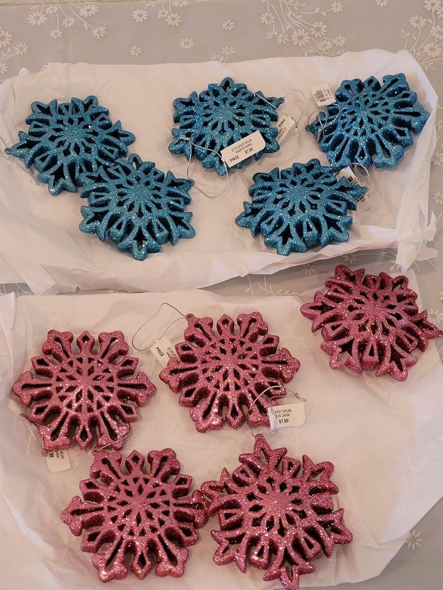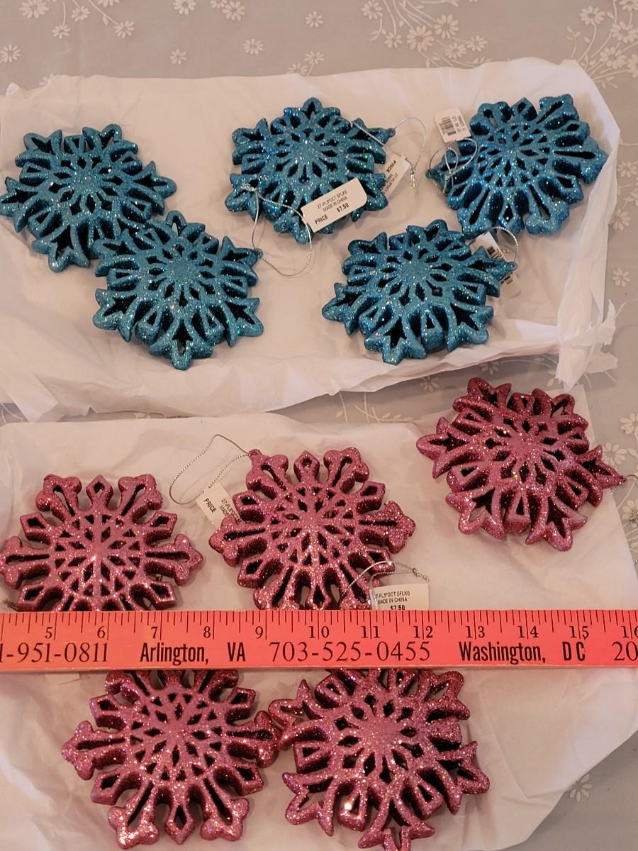 Lot 56: New Blue and Pink Glitter Snowflakes