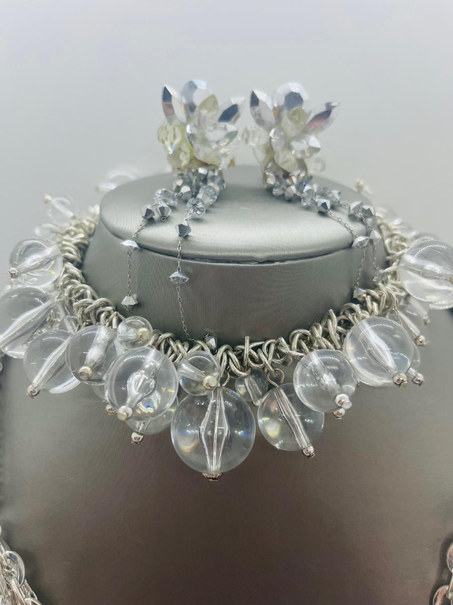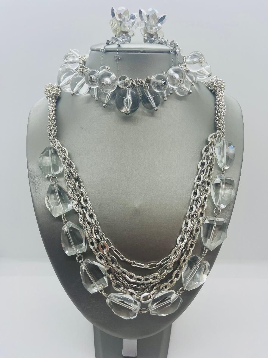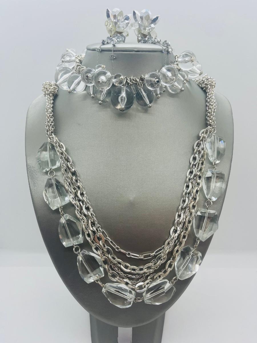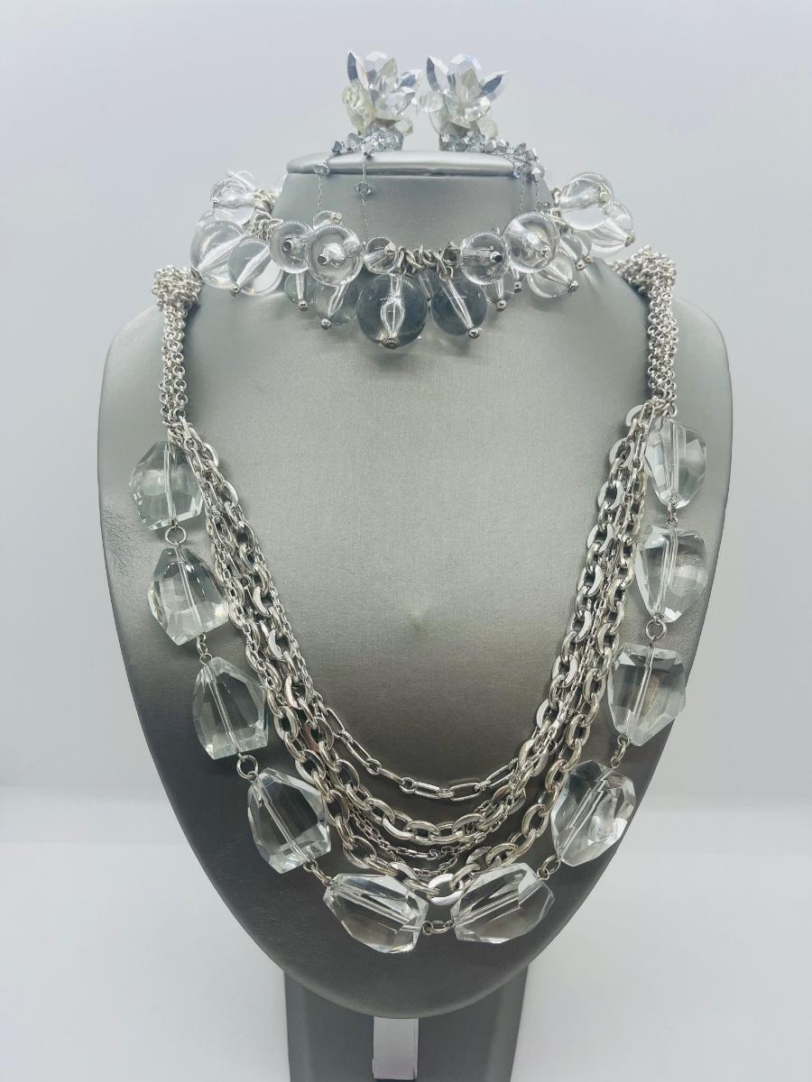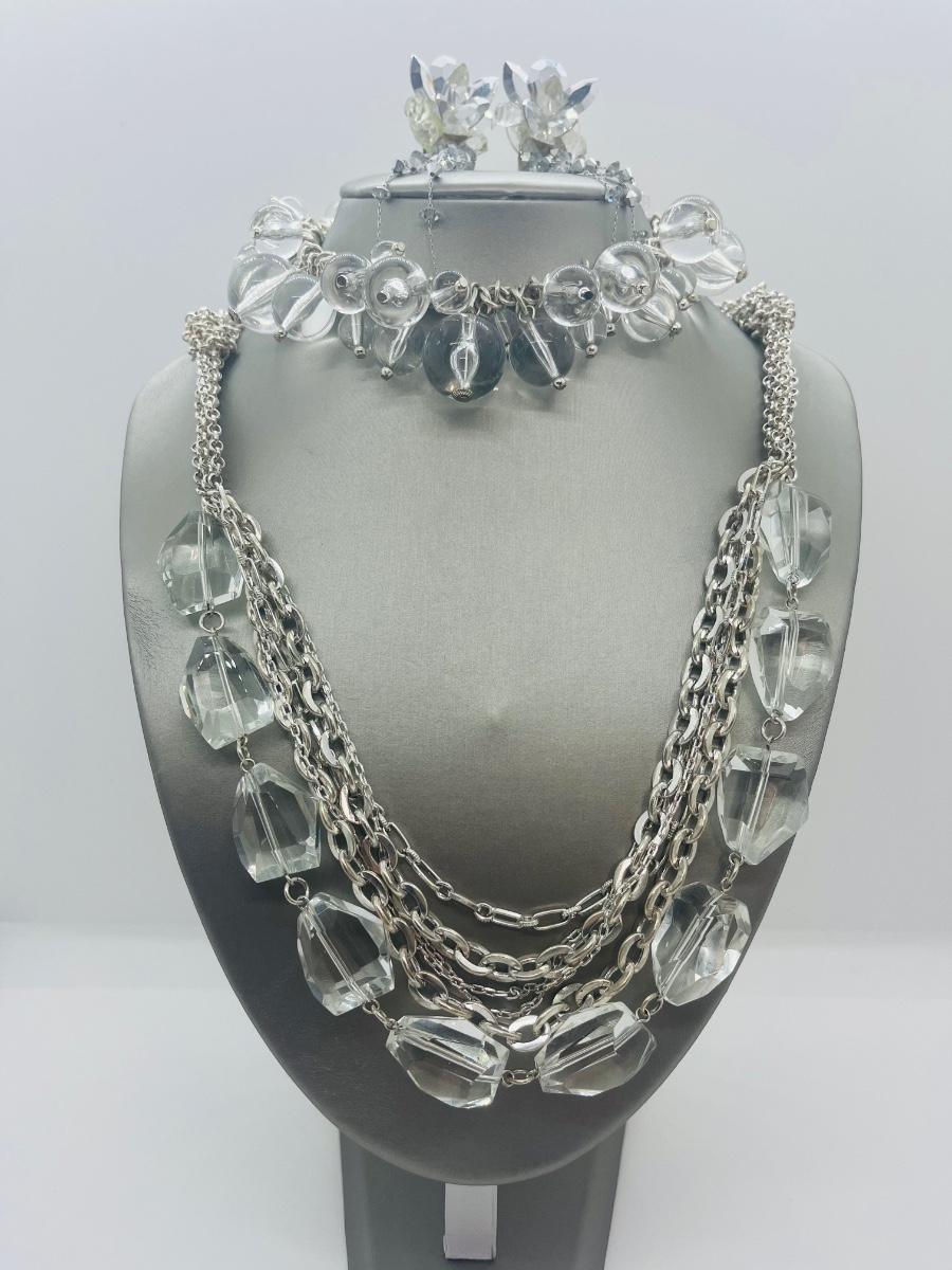 Lot 56: Multi Strand Beaded Necklace, Bracelet and Clip On Earrings