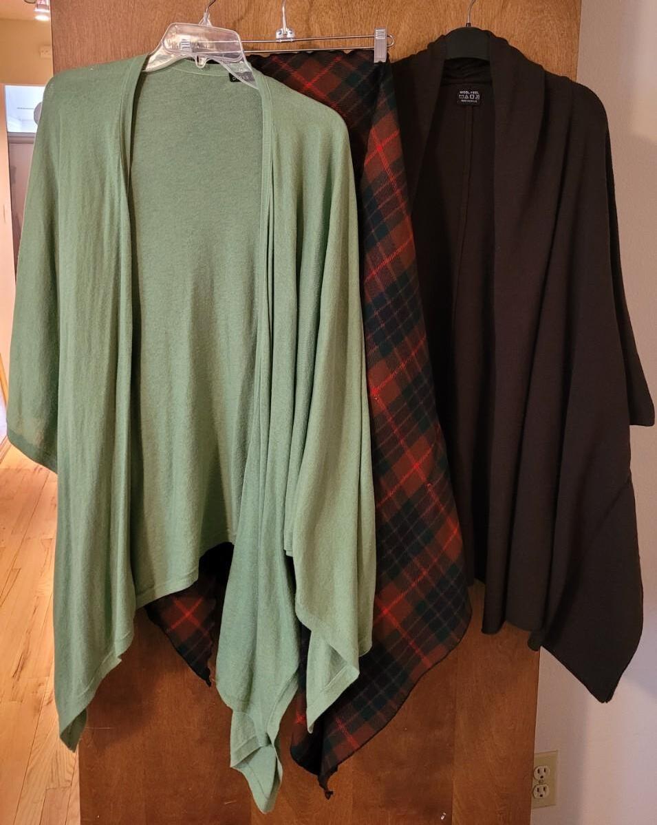 Lot 56: (3) Ladies Wraps - Green, Brown & Wool Plaid