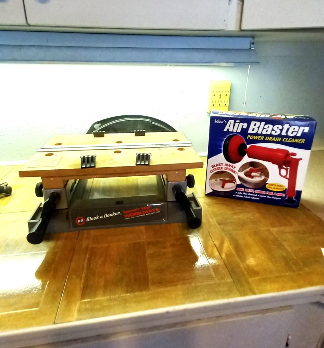 BLACK & DECKER TABLETOP WORKMATE AND AIR BLASTER POWER DRAIN CLEANER