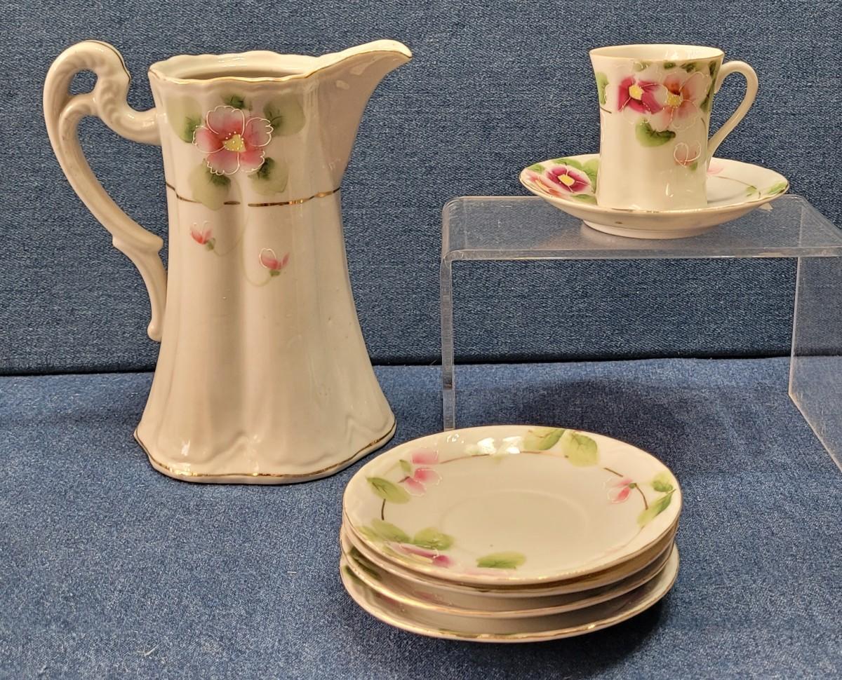 Lot 56: Vintage Handpainted Nippon Tea Pitcher, Cup and Plates