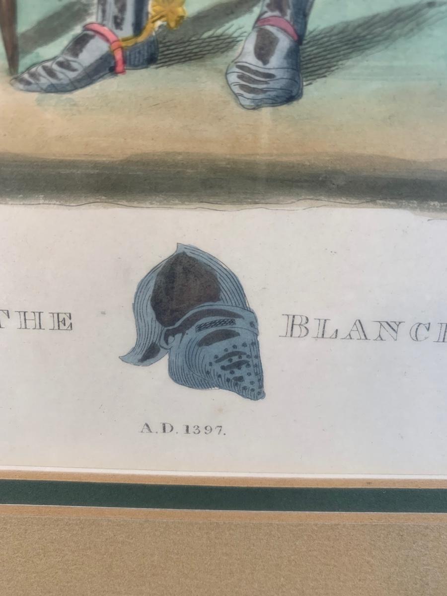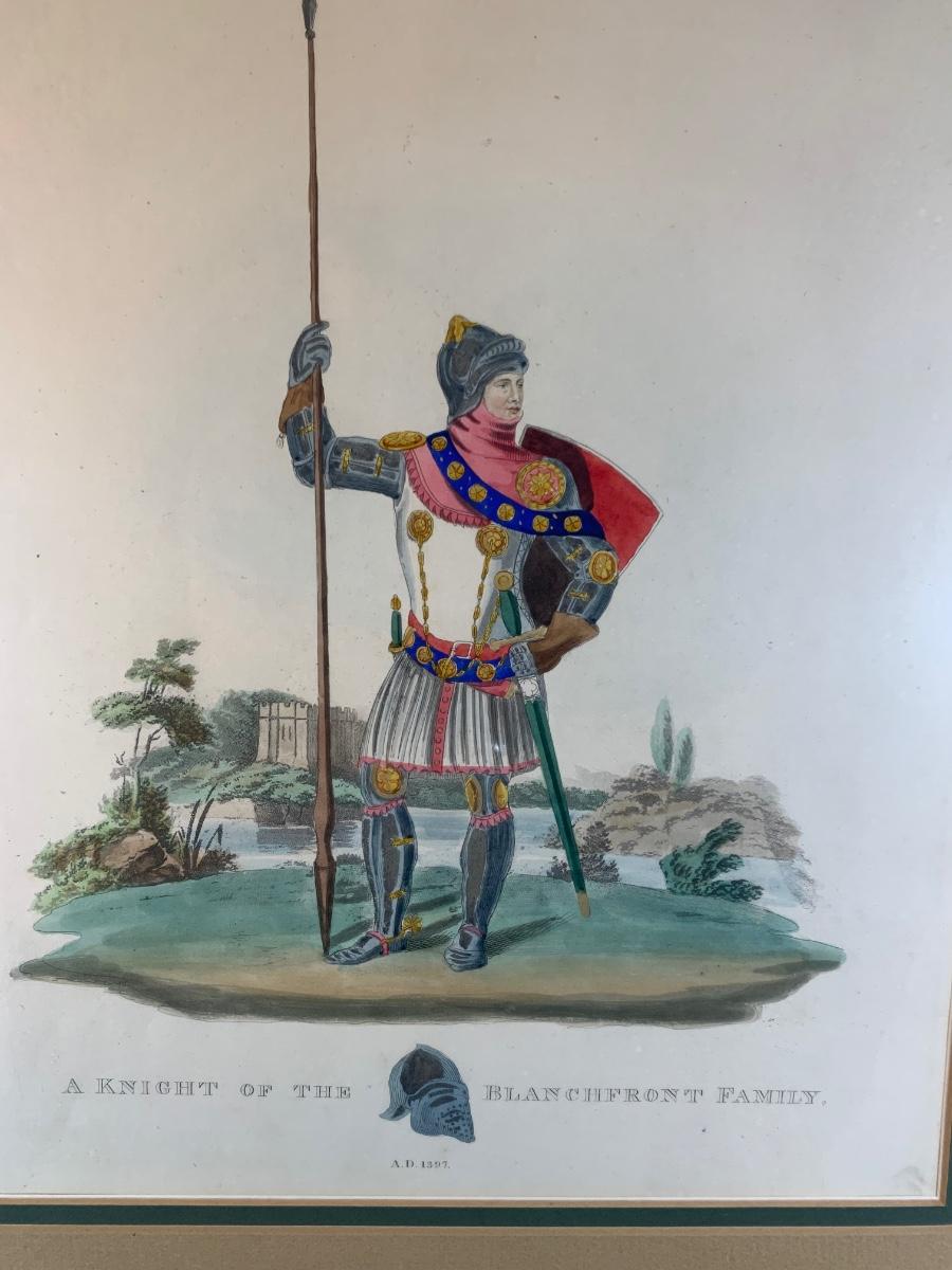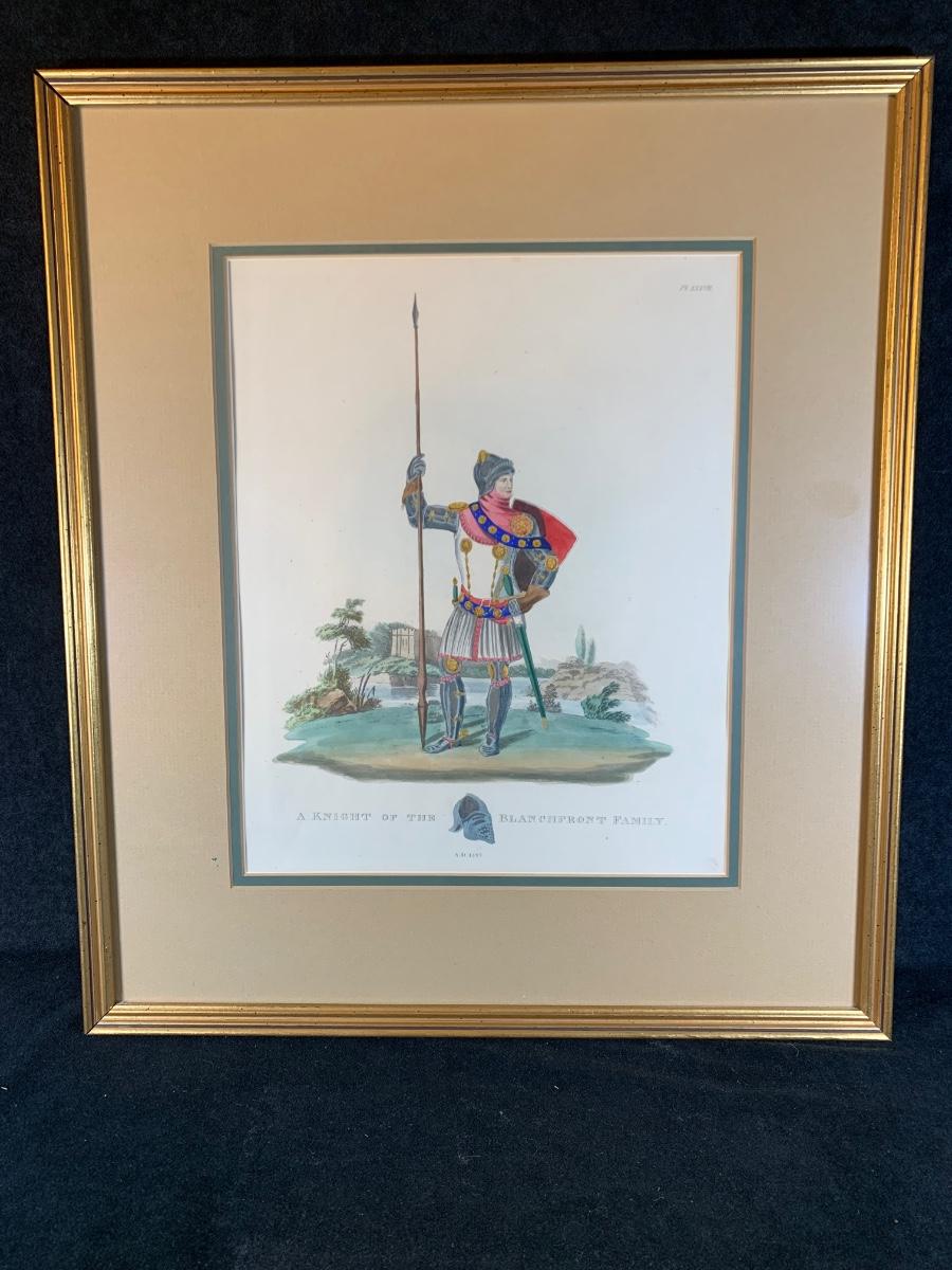 Framed with a double mat. measures 19" x 16 1/2", depicting A Knight of the Blanchfront Family 1397