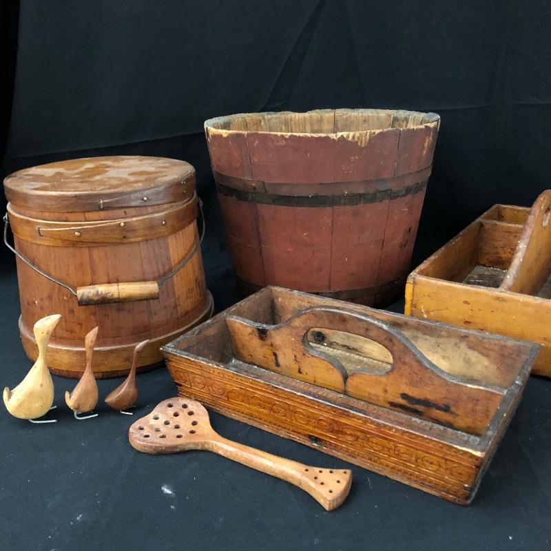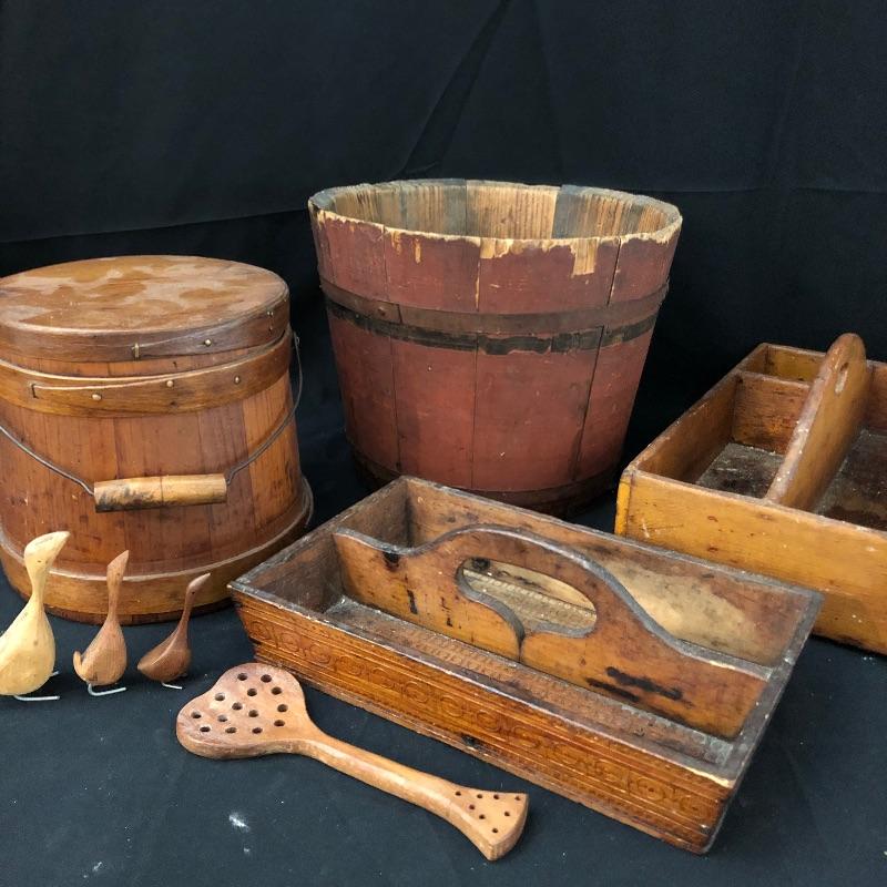 Lot 56 - Antique Wooden Pails and Trays