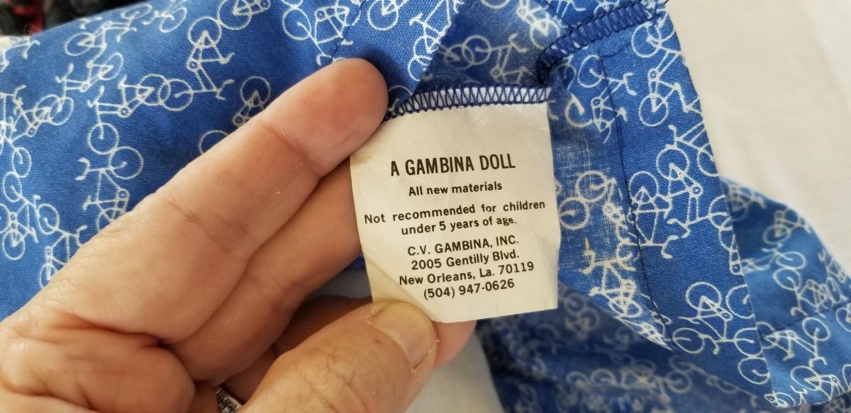 Collectible GAMBINA New Orleans Cloth Black doll - 16" tall - original clothing. Apron is lightly stained on one side (we haven't tried to wash). Cabinet kept - good condition. These dolls have pretty much disappeared from stores and are only available on the secondary market.