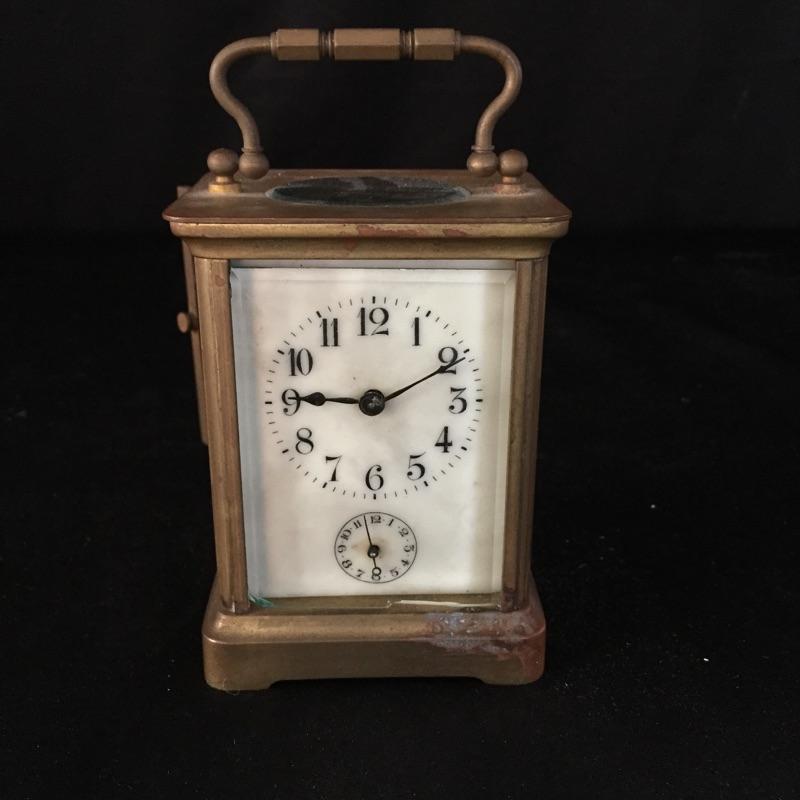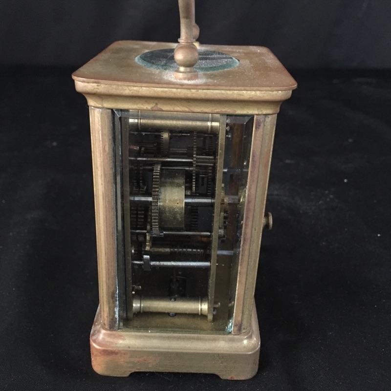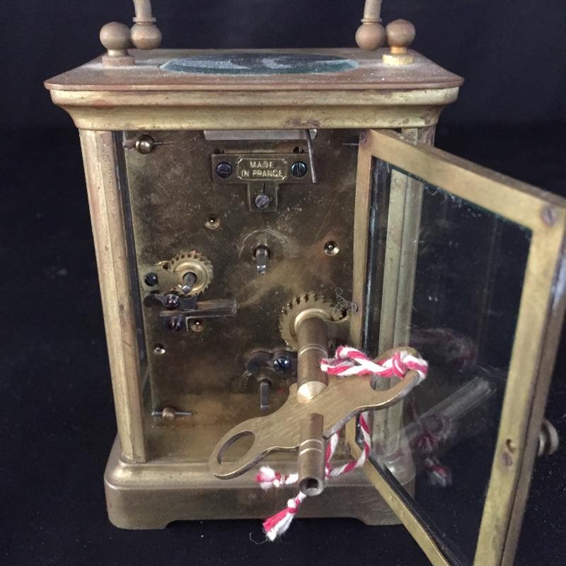 Exquisite French made brass carriage clock with alarm. Nice portable small size. Comes with key to wind. Don’t miss out on this beauty. Clock measures 2.5” x 3.5” x 4.25”.