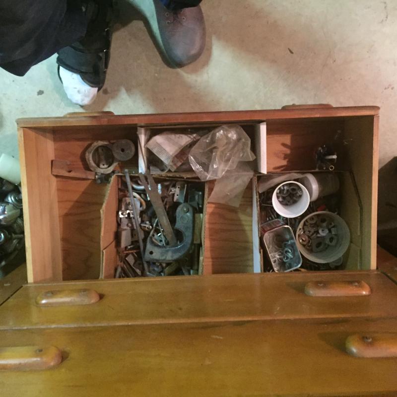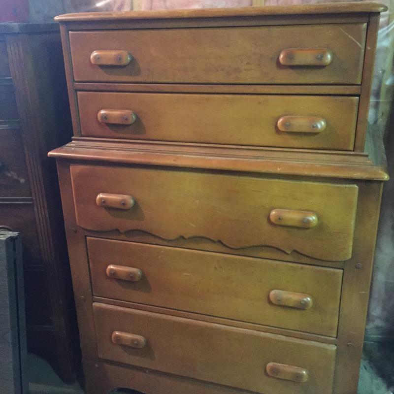 Dresser with Contents. Has split in top and lots of scratches.