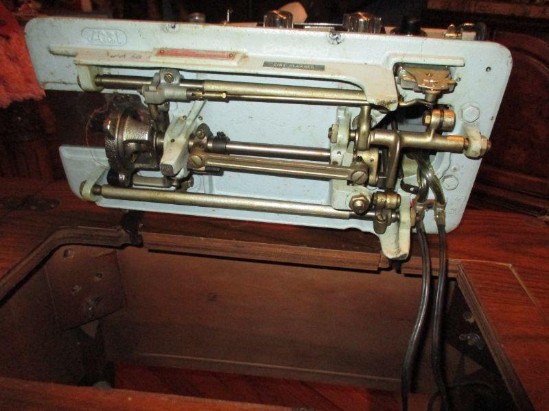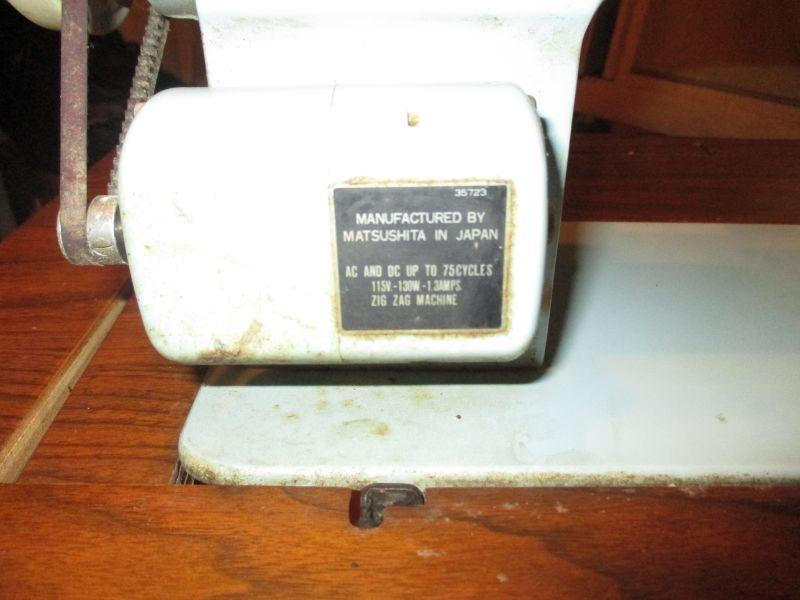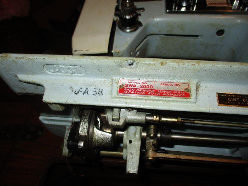 Dressmaker model SWA 2000 serial number 164533. It did power on, but I didn't try to sew anything because I don't know how to operate this particular machine. It powers on when you plug it in, but there is not an on/off switch that I could find. It comes with the cabinet.