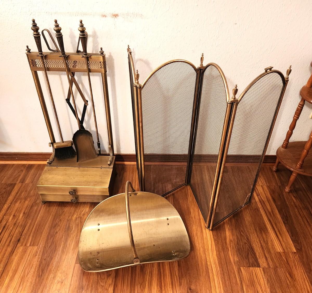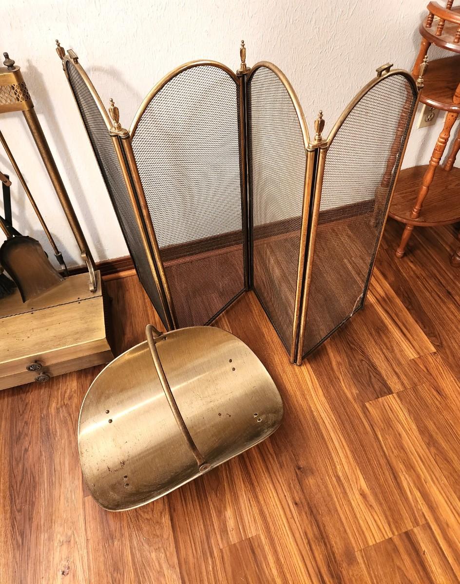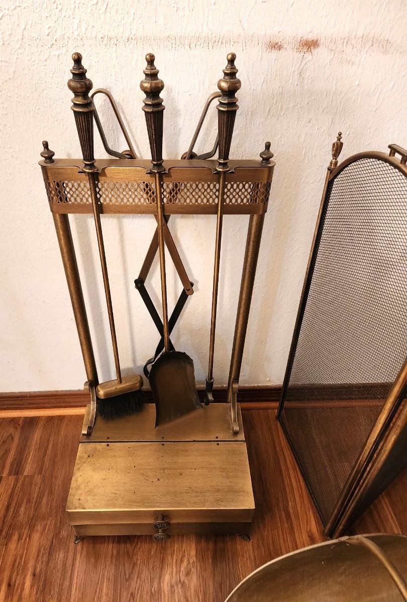 You get all you see here - brushed brass finish - tool set (4 tools with stand), folding fire screen (32" across, 51" tall), log holder. Good used condition.