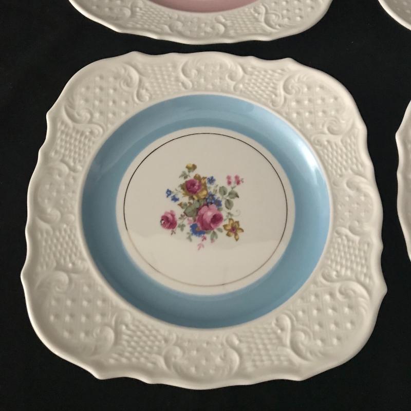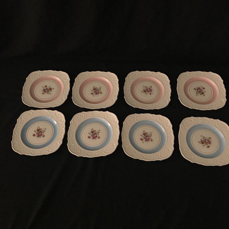 Made by Washington Colonial these 8 matching (blue and pink) 8” plates would make sweet Bridge or luncheon plates. Lot is available for shipping or local pick up in Maggie Valley, NC.