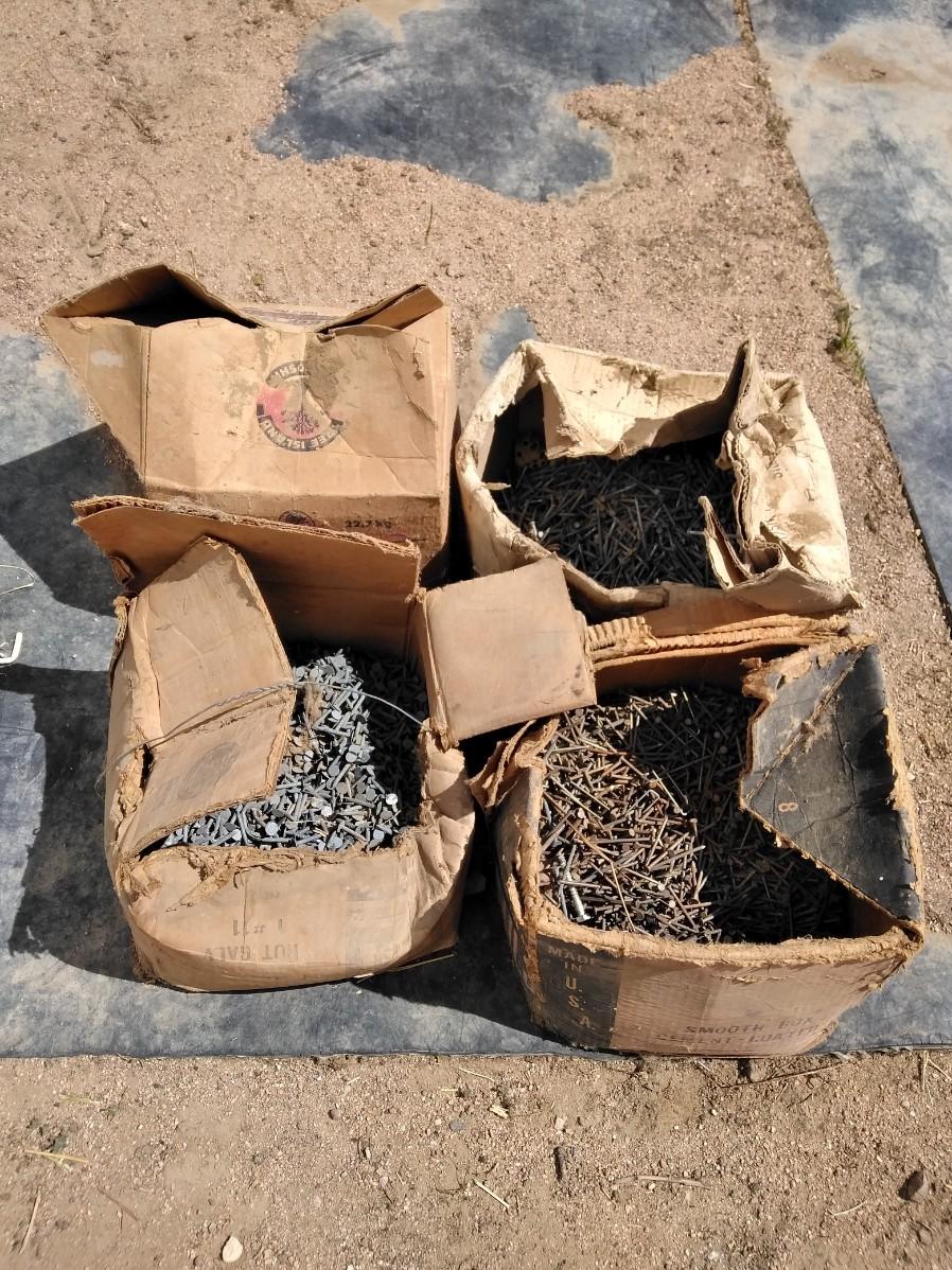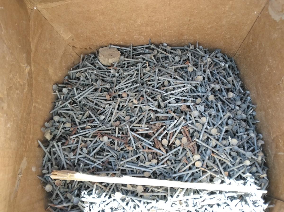 FOUR PARTIAL / FULL BOXES OF NAILS. BOXES EACH CONTAIN DIFFERENT SIZED NAILS.