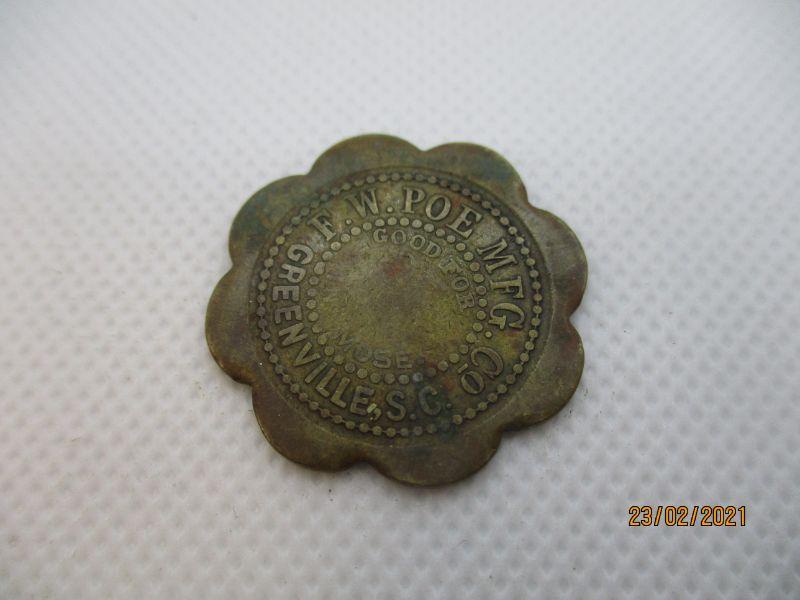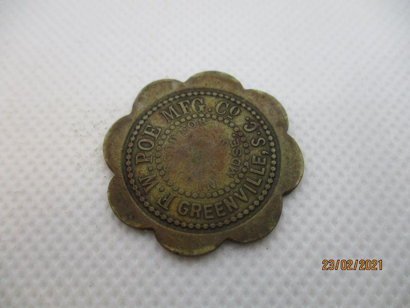 Lot 56 - F.W. Poe Manufacturing Co. Greenville SC Token