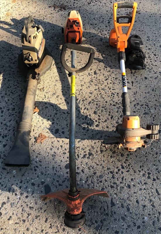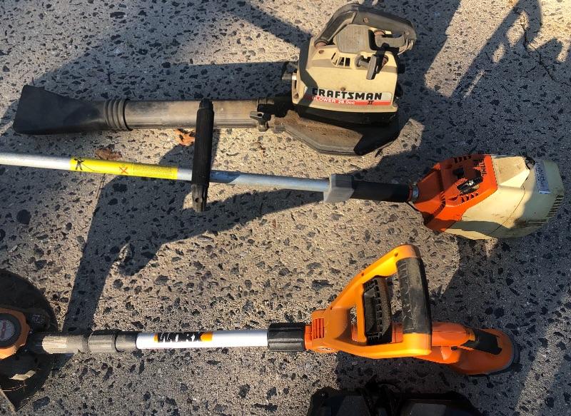 Craftsman 28cc gas powered leaf blower, Stihl FS 36 gas powered weed wacker & Worx electric weed wacker with battery and power station for charging. MM Please see all pictures for content of the lot, condition of the lot, and measurements if taken. Pictures are the best representation of the items listed and items are untested unless indicated in description. Thank you for looking and have fun bidding!