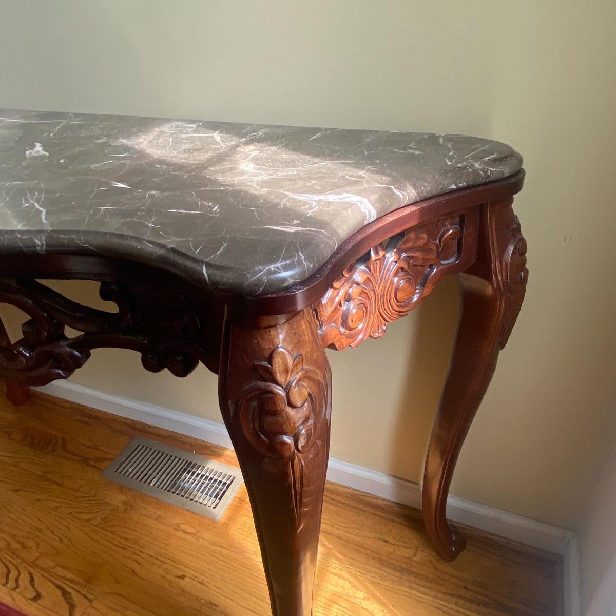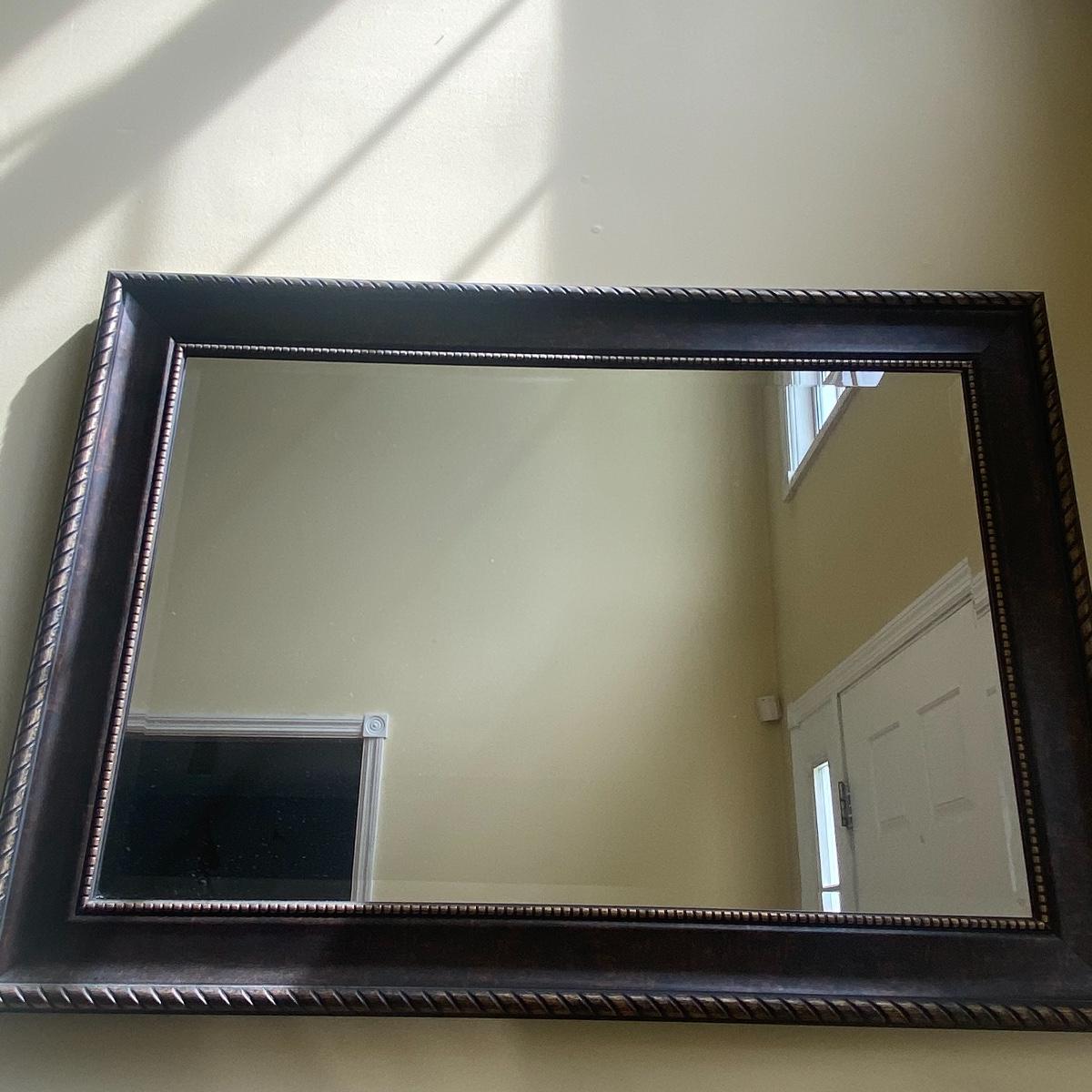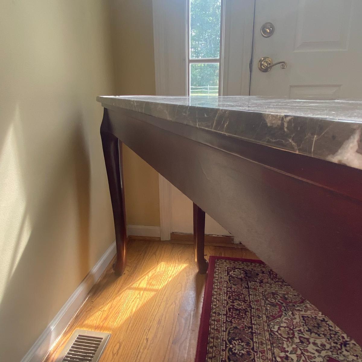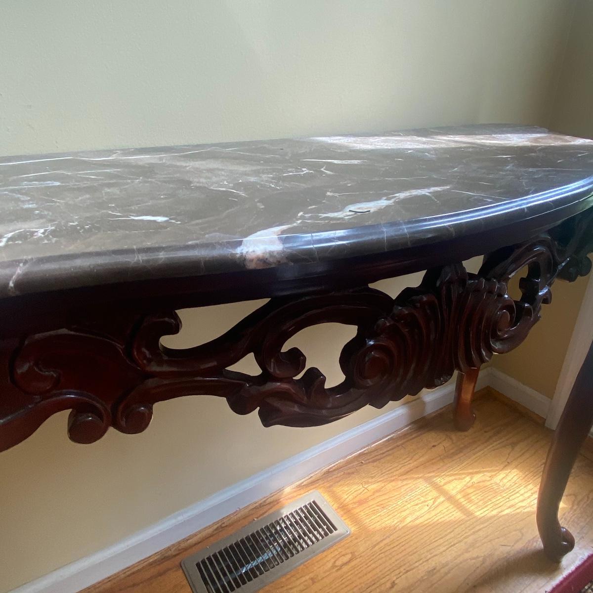 Lot includes a steady granite top, entryway table. Included in the lot is a large mirror. Creating a beautiful moment when you step in the door. Brown granite slab can be lifted from the table base, table measures 50" x 18" x 32". Mirror measurements are 43" x 31". See photos! Local pick up only!