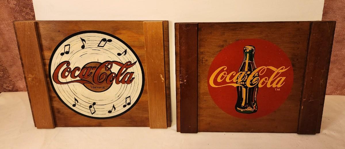 Attic find! Wooden Advertising toppers for record crates. We actually found these on line. They have magnets on the back - apparently the bottoms meet up with the magnets to keep the lids closed. They measure 16" x 13". Anyone want? Probably from the 70's.