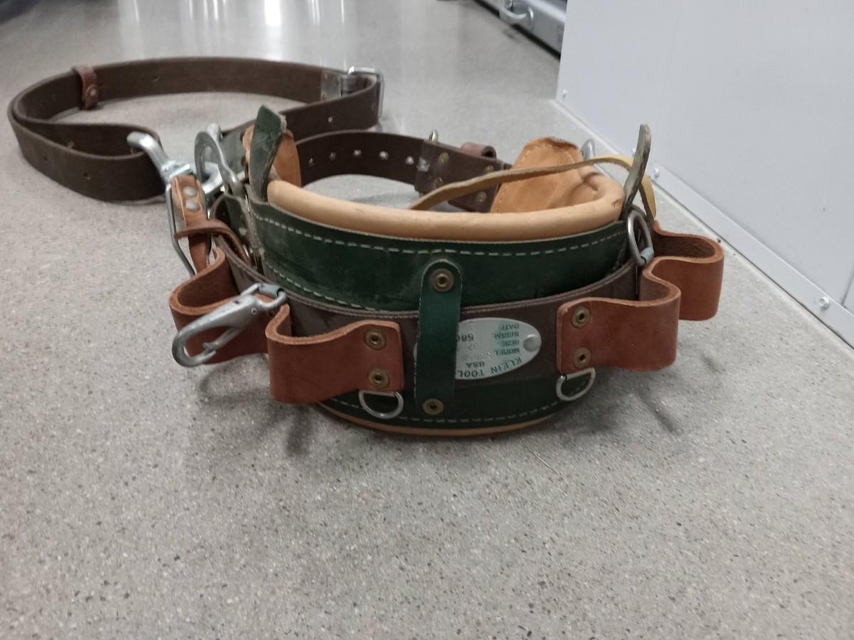 LOT 56W KLEIN LINEMAN BELT WITH A LEATHER POLE SAFETY STRAP