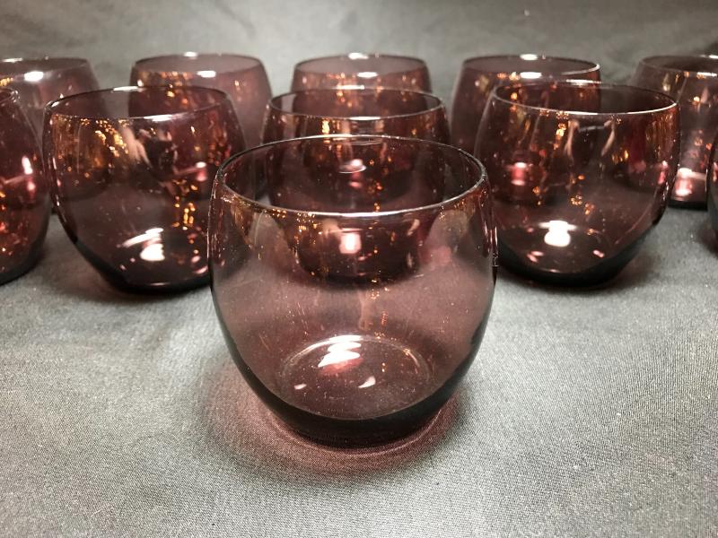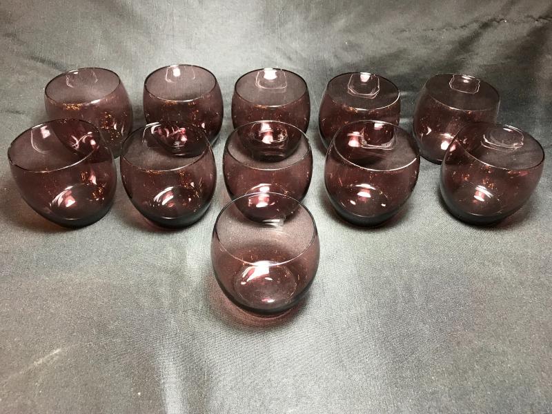 Lot 56- MC Set of Eleven Burmese Handblown Brown Glass Rolly Polly Glasses